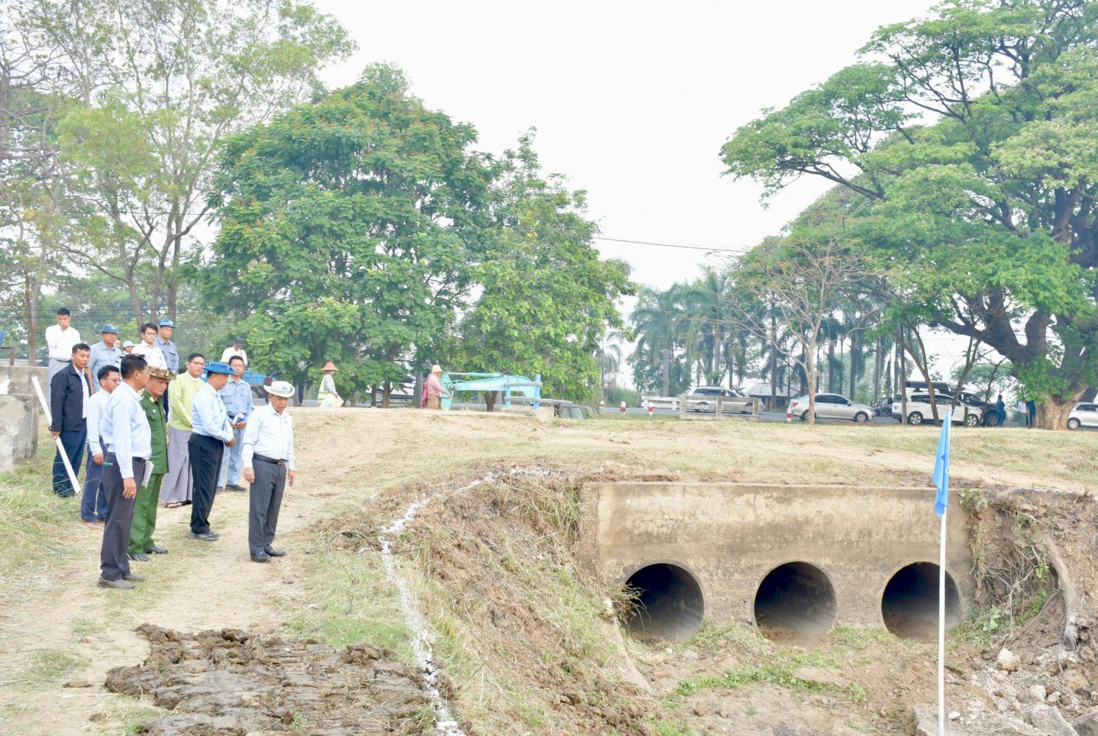 နေပြည်တော်ကောင်စီဥက္ကဋ္ဌ ဦးသန်းထွန်းဦးသည် တာဝန်ရှိသူများနှင့်အတူ ယမန်နေ့နံနက်ပိုင်းတွင် ပြည်ထောင်စုနယ်မြေ၊ နေပြည်တော်၊ ဇေယျာသီရိမြို့နယ်၊ ရန်ကုန်-မန္တလေးပြည်ထောင်စုလမ်းမကြီးသို့ သွားရောက်ပြီး လမ်းဘေးဝဲ/ယာတွင် ပင်လောင်းလမ်းဆုံနှင့် ကျောက်ချက်ကျေးရွာအထိ ရေကြီးရေလျှံမှု လျော့နည်းသက်သာစေရေး၊ ရေစီးရေလာကောင်းမွန်စေရေးအတွက် ရေမြောင်းများတူးဖော်နေမှုအား လှည့်လည်ကြည့်ရှုစစ်ဆေးပြီး တာဝန်ရှိသူများအား လမ်းဘေးရေမြောင်းများ ရေစီးရေလာကောင်းမွန်စေရေးအတွက် အမှိုက်များရှင်းလင်းဆောင်ရွက်ထားရှိရေး၊ ရေမြောင်းတူးဖော်နေမှုအား သတ်မှတ်အတိုင်းအတာအတိုင်း စနစ်တကျတူးဖော်ရေး၊ ရေနုတ်မြောင်းကြမ်ခင်း အနိမ့်အမြင့် Level စနစ်တကျ တိုင်းတာဆောင်ရွက်ရေး၊ Box Culvert များ စနစ်တကျဆောင်ရွက်ရေးနှင့် အမှိုက်များပိတ်ဆို့မှုမရှိစေရေးတို့ကို မှာကြားခဲ့သည်။
