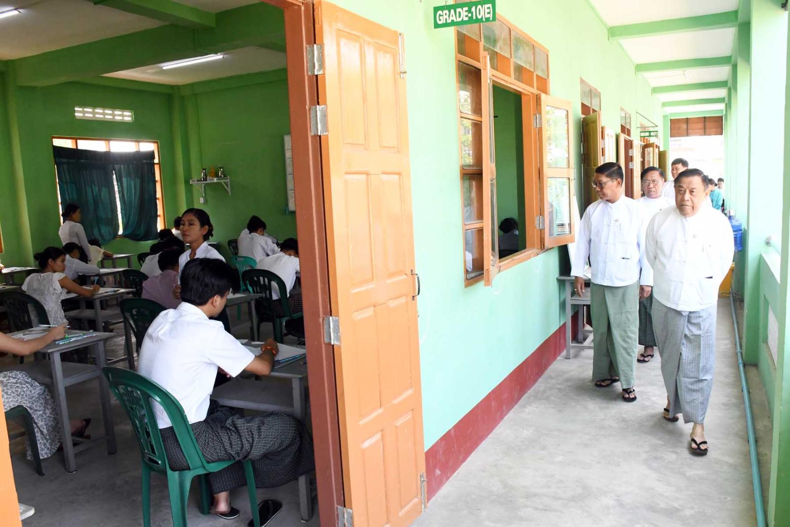 ဦးစွာတိုင်းဒေသကြီးပညာရေးမှူးရုံးမှညွှန်ကြားရေးမှူး ဦးဝင်းနောင်က စာမေးပွဲဖြေဆိုနေစဉ်ကာလအတွင်း ဆောင်ရွက်ထားရှိမှုအခြေအနေများနှင့်ဖြေဆို/ပျက်ကွက်သူ ဦးရေစာရင်းများအား ရှင်းလင်းတင်ပြရာ တိုင်းဒေသကြီးဝန်ကြီးချုပ်က စာမေးပွဲအခန်းတာဝန်ကျ ကြီးကြပ်ရေးမှူးများနှင့် သက်ဆိုင်ရာတာဝန်ရှိသူများအား ကျောင်းသား/ကျောင်းသူများ စိတ်အေးချမ်းသာစွာဖြေဆိုနိုင်ရေးအတွက် လိုအပ်သည်များကို ဖြည့်ဆည်းဆောင်ရွက်ပေးရန်လိုအပ်ကြောင်း၊ စာမေးပွဲ ဖြေဆိုနေသည့်ကာလအတွင်း စာဖြေခန်းအတွင်းအပြင် သန့်ရှင်းရေး၊ လေဝင်လေထွက်ကောင်းမွန်ရေးနှင့် အလင်းရောင်လုံလောက်စွာရရှိရေး ဆောင်ရွက်ပေးရန်၊ စာဖြေသူနှင့်စာမေးပွဲလုပ်ငန်းအနှောင့်အယှက်မဖြစ်စေရေး ဂရုပြုဆောင်ရွက်ပေးရန်၊ ကျောင်းသား/ကျောင်းသူများ၏ ကျန်းမာရေးအားအလေးထားဆောင်ရွက်ပေးရန် လိုအပ်ကြောင်း၊ စာမေးပွဲကိုစာမေးပွဲ စည်းမျဉ်းစည်းကမ်းများနှင့်အညီ ဖြေဆိုနိုင်ရေးဝိုင်းဝန်းကူညီဆောင်ရွက်ပေးရန် လိုအပ်ကြောင်း မှာကြားသည်။