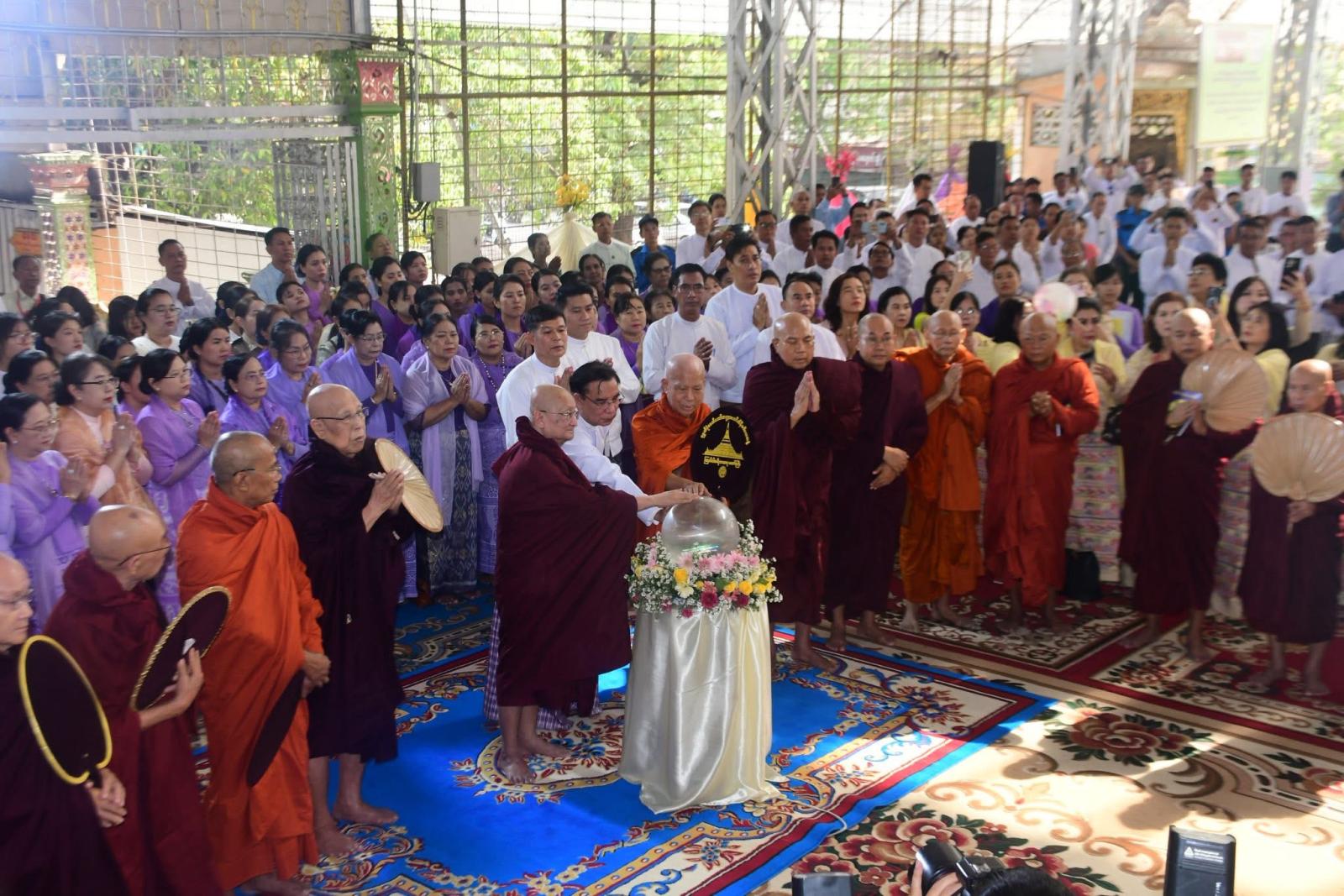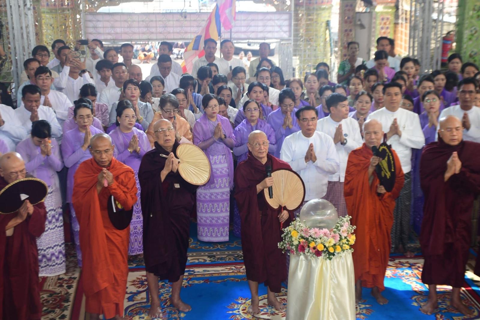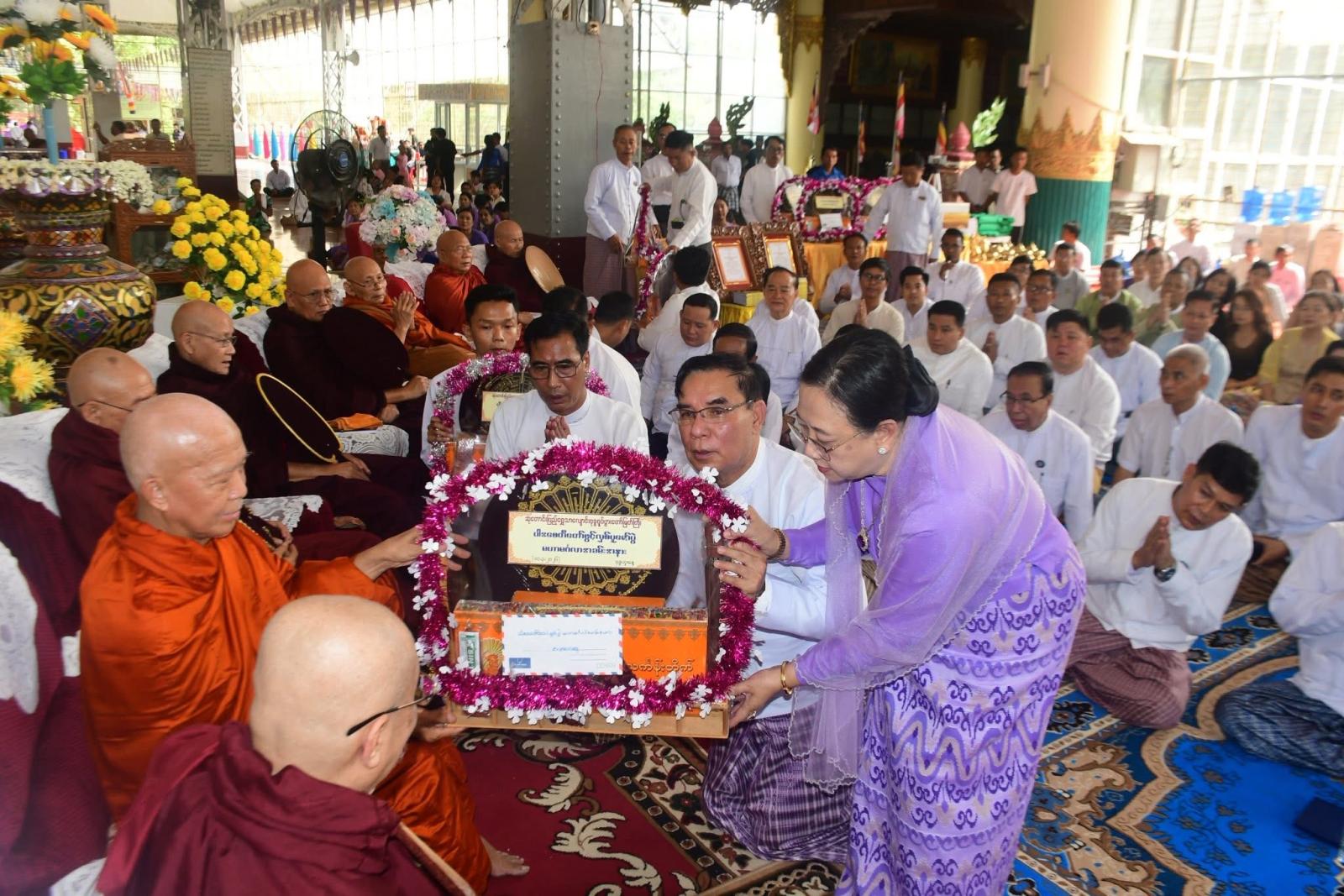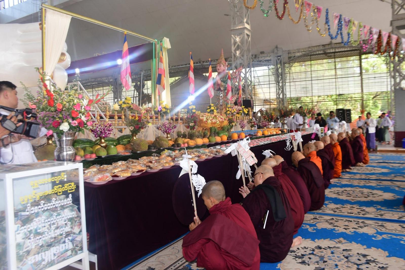 ဆက်လက်၍ ပဲခူးတိုင်းဒေသကြီး ဝန်ကြီးချုပ်နှင့်ဇနီး အမှူးပြုသော အလှူရှင်များက ရန်ကုန်တိုင်းဒေသကြီး၊ ဗဟန်းမြို့နယ်၊ ပါဠိတက္ကသိုလ်ညောင်တုန်းကျောင်းတိုက်၊ ဦးစီးပဓာနနာယက၊ အဂ္ဂမဟာပဏ္ဍိတ အဂ္ဂမဟာသဒ္ဓမ္မဇောတိကဓဇ၊ ဘဒ္ဒန္တနာရဒါဘိဝံသ (လှရတနာဆရာတော်)အရှင်သူမြတ်ထံမှ အနုမောဒနာတရားနာယူခဲ့ကြပြီး လှူဒါန်းမှုအစုစုအတွက် ရေစက်သွန်းချအမျှအတမ်းပေးဝေခဲ့ကြကာ အခမ်းအနားအား “ဗုဒ္ဓသာသနံ စိရံတိဋ္ဌတု” သုံးကြိမ်ရွတ်ဆို၍ ရုပ်သိမ်းခဲ့ကြသည်။ ၎င်းနောက် ပဲခူးတိုင်းဒေသကြီး ဝန်ကြီးချုပ်နှင့် ဇနီး၊ တာဝန်ရှိသူများက ကြွရောက်လာသည့် ဆရာတော်ကြီးများအား နေ့ဆွမ်းဆက်ကပ်လှူဒါန်းခဲ့ကြကြောင်း သိရသည်။