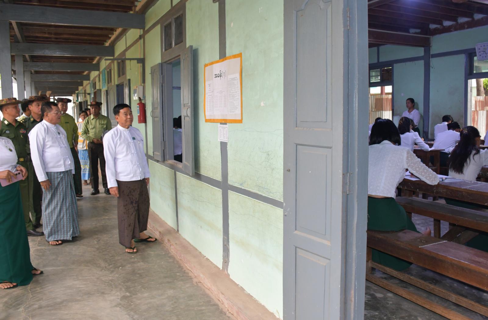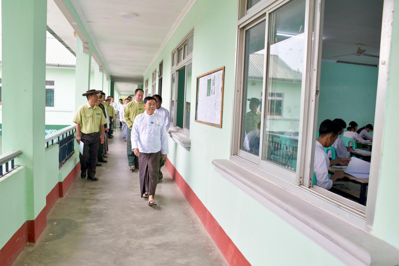 ထို့နောက် နေပြည်တော်ကောင်စီဥက္ကဋ္ဌ ဦးသန်းထွန်းဦးသည် လယ်ဝေးမြို့နယ်၊ အမှတ်(၂)အခြေခံပညာအထက်တန်းကျောင်း၊ ပျံချီကျေးရွာ၊ အခြေခံပညာနှင့် စက်မှု၊ စိုက်ပျိုး၊ မွေးမြူရေးအထက်တန်းကျောင်းနှင့် ပျဉ်းမနားမြို့နယ်၊ အမှတ်(၁) အခြေခံပညာနှင့် စက်မှု၊ စိုက်ပျိုး၊ မွေးမြူရေးအထက်တန်းကျောင်းစာစစ်ဌာနများသို့ သွားရောက်၍ တက္ကသိုလ်ဝင်စာမေးပွဲ မြန်မာစာဘာသာရပ်ကို ကျောင်းသား၊ ကျောင်းသူများ အေးချမ်းစွာဖြေဆိုနေမှုကို လှည့်လည်ကြည့်ရှုအားပေးပြီး လိုအပ်သည်များကို ပေါင်းစပ်ဆောင်ရွက်ပေးခဲ့သည်။