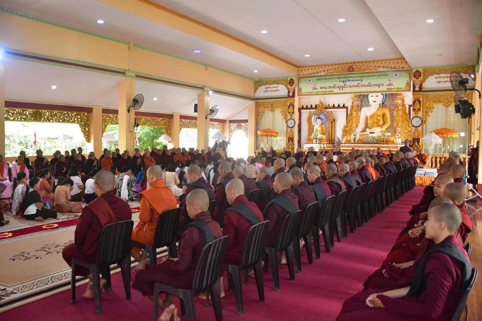 ထို့နောက် အဂ္ဂမဟာဂန္ထဝါစကပဏ္ဍိတ နိုင်ငံတော်ဗဟိုသံဃာ့ဝန်ဆောင် မဟာဓမ္မိကာရာမ အုန်းတောကျောင်းတိုက် ပဓာနနာယက ဆရာတော် ဘဒ္ဒန္တတိဿအရှင်သူမြတ်ထံမှ အနုမောဒနာတရား နာယူကာလှူဒါန်းမှုအစုစုတို့အတွက် ရေစက်သွန်းချ အမျှပေးဝေခဲ့ကြပြီး အခမ်းအနားကို ဗုဒ္ဓသာသနံစိရံတိဋ္ဌတု သုံးကြိမ်ရွတ်ဆိုဆုတောင်း၍ ရုတ်သိမ်းခဲ့ပြီးနောက် နာယကဆရာတော်ကြီးများ၊ စာအောင်သံဃာတော်များနှင့် သီလရှင်များအား အလှူရှင်များက လှူဖွယ်ဝတ္ထုပစ္စည်းများ လောင်းလှူခဲ့ကြသည်။