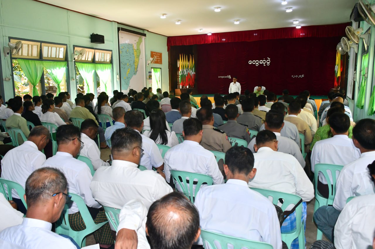 ယင်းနောက် တနင်္သာရီတိုင်းဒေသကြီးအစိုးရအဖွဲ့ အတွင်းရေးမှူး တိုင်းဒေသကြီးအုပ်ချုပ်ရေးမှူး ဦးအောင်ချိုက နိုင်ငံ့ဝန်ထမ်းများအနေဖြင့် နိုင်ငံဝန်ထမ်းသစ္စာအဓိဋ္ဌာန် (၆)ချက်နှင့်အညီ ပြုမူနေထိုင်ကြရန်လိုကြောင်း၊ ဒေသတွင်း အခြေခံစားသောက်ကုန်ဖူလုံနိုင်စေရေးအတွက် စိုက်ပျိုးရေးနှင့် မွေးမြူရေးလုပ်ငန်းများ အလေးထားဆောင်ရွက်ရန်လိုကြောင်း၊ ပညာရေးသည် အဓိကအရေးကြီးအခန်းကဏ္ဍတွင်ပါဝင်၍ ဆင်းရဲနွမ်းပါးသူများနှင့် အခြေခံလူတန်းစားများအား အတန်းအဆက်မပြတ် တက်ရောက်ပညာသင်ကြားနိုင်ရေး အလေးထားဆောင်ရွက်ရန်လိုကြောင်း၊ နိုင်ငံ့ဝန်ထမ်းများ/ဌာနအဖွဲ့အစည်းများအနေဖြင့် တရားမဝင်ကုန်သွယ်မှုလုပ်ငန်းများတွင် ပါဝင်ပတ်သက်မှုမရှိစေရေးနှင့် လုပ်ငန်းများဆောင်ရွက်ရာ၌ အဂတိကင်းရှင်းစွာဆောင်ရွက်၍ မိမိတို့ ဒေသဖွံ့ဖြိုးတိုးတက်ရေးအတွက် ပညာရေး၊ ကျန်းမာရေးနှင့် လူမှုရေးကဏ္ဍအလိုက် ဝိုင်းဝန်းပူးပေါင်းဆောင် ရွက်ရန်လိုကြောင်း၊ ရပ်/ကျေးအုပ်ချုပ်ရေးမှူးများအနေဖြင့် နိုင်ငံတော်အပေါ်သစ္စာစောင့်သိ၍ ရပ်ရွာတိုးတက်ရေးနှင့် ပြည်သူအကျိုးဆောင်ရွက်ရန် တာဝန်၊ ဝတ္တရားများသိရှိပြီး ဥပဒေ၊ နည်းဥပဒေများ နားလည်၍ လမ်းညွှန်မှာကြားချက်များ၊ ဥပဒေများနှင့်အညီ ဝိုင်းဝန်းပူးပေါင်းဆောင်ရွက်ရန်လိုအပ်ကြောင်း၊ ဌာနဆိုင်ရာဝန်ထမ်းများအချင်းချင်း စည်းလုံးချစ်ခင်စွာဖြင့် ညွှန်ကြားချက်များ တိကျလိုက်နာ၍ လုပ်ငန်းများအောင်မြင်အောင်ဆောင်ရွက်ရန် မှာကြားခဲ့သည်။ ယင်းနောက် လူမှုရေးရာဝန်ကြီး ဦးသက်နိုင်က နိဂုံးချုပ်စကားပြောကြားခဲ့ပြီး ခရိုင်/မြို့နယ်အဆင့်ဌာနဆိုင်ရာများ၊ ရပ်/ကျေးအုပ်ချုပ်ရေးမှူးများ၊ စာရေးဝန်ထမ်းများနှင့် လိုက်လံနှုတ်ဆက်အားပေးစကားပြောကြားခဲ့သည်။