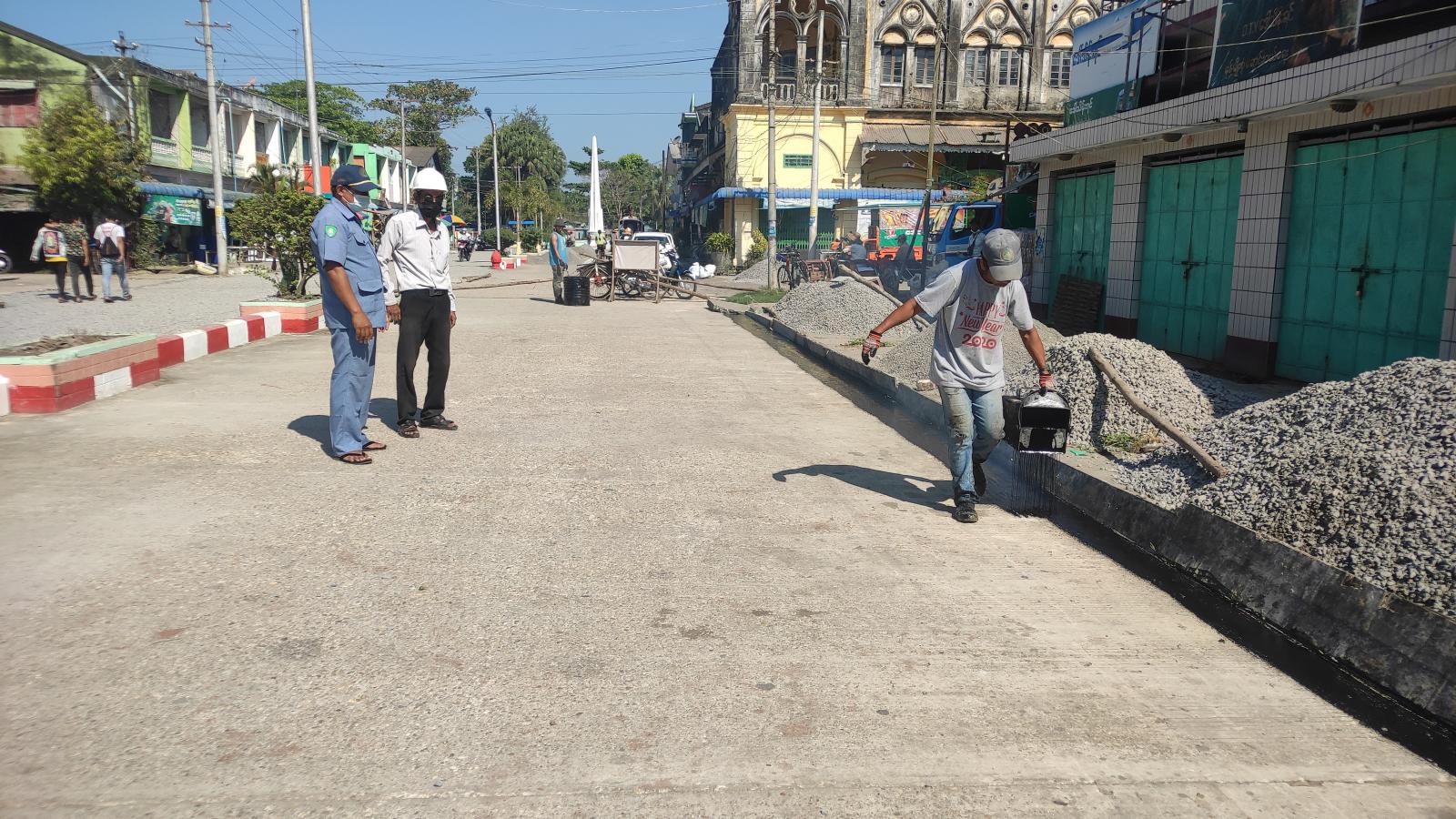 ယင်းသို့ဆောင်ရွက်ရာတွင် ဒေသခံပြည်သူများ၊ စျေးရောင်းစျေးဝယ်နှင့် ကျောင်းသား၊ ကျောင်းသူများ အစဉ်အမြဲ ဖြတ်သန်း သွားလာနေရသော လမ်းဖြစ်သည့် စတုရန်းပေ ၂၅၀၀၀ ရှိ စျေးရပ်ကွက်နှင့် ပတ္တမြားရပ်ကွက်ကြား ဘုရားကြီးလမ်း နှစ်လမ်းသွား ကွန်ကရစ်လမ်းအား ကတ္တရာ ရေပိတ်လွှာခင်းခြင်းလုပ်ငန်းကို မြို့နယ် စည်ပင်သာယာရေးအဖွဲ့ ခွင့်ပြုရန်ပုံငွေ ကျပ်သိန်း ၉၀ ဖြင့် လည်းကောင်း၊ အလျား ၇၅၀ ပေ၊ အနံ ၃၀ ပေ၊ ထု ၄ ဒသမ ၅ လက်မရှိ မင်းပိုင်းရပ်ကွက် ကမ်းနားလမ်း ကတ္တရာ ထပ်ပိုးလွှာခင်းခြင်း လုပ်ငန်းကို မြို့နယ်စည်ပင်သာယာရေးအဖွဲ့ ခွင့်ပြုရန်ပုံငွေကျပ် ၃၄၈ သိန်းဖြင့် လည်းကောင်း SMEC ကုမ္ပဏီက တာဝန်ယူ ဆောင်ရွက် လျက်ရှိကြောင်း သိရသည်။