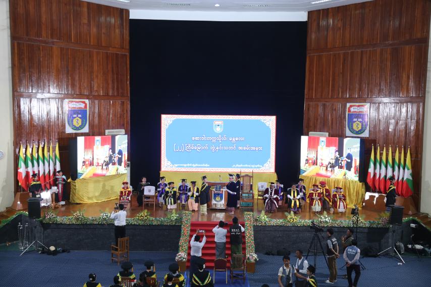 မန္တလေးတိုင်းဒေသကြီး၊ အမရပူရမြို့နယ်ရှိ ကျန်းမာရေးဝန်ကြီးဌာန၊ ကျန်းမာရေးလူ့စွမ်းအားအရင်းအမြစ်ဦးစီးဌာန၊ ဆေးဝါးတက္ကသိုလ် မန္တလေး၏ (၂၂) ကြိမ်မြောက်နှင့် (၂၃) ကြိမ်မြောက်ဘွဲ့နှင်းသဘင် အခမ်းအနားကို ယနေ့နံနက် ၉ နာရီက မန္တလေးတက္ကသိုလ် ဘွဲ့နှင်း သဘင်ခန်းမ၌ ကျင်းပခဲ့သည်။