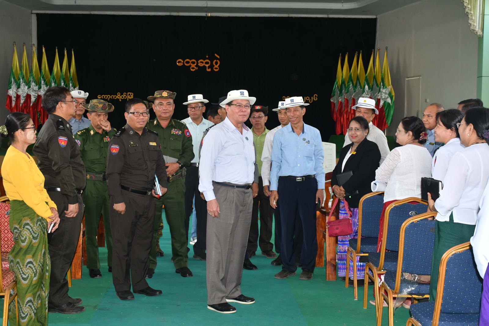 ထို့နောက် ပြည်နယ်ဝန်ကြီးချုပ်နှင့်တာဝန်ရှိသူများသည် တာဝန်ထမ်းဆောင်လျက်ရှိသော ခရိုင်၊ မြို့နယ်အဆင့် ဌာနဆိုင်ရာဝန်ထမ်းများနှင့် ကော့ကရိတ်မြို့၊ အောင်ဆန်းခန်းမ၌ တွေ့ဆုံအမှာစကားပြောကြားပြီး ဌာနဆိုင်ရာများဆွေး နွေးတင်ပြသည့်ကိစ္စရပ်များကိုသက်ဆိုင်ရာတာဝန်ရှိသူများနှင့် ပေါင်းစပ်ညှိနှိုင်းဖြည့်ဆည်းဆောင်ရွက်ပေးခဲ့ကာ ဆန်၊ ဆီ အစရှိသော စားသုံးကုန်များကို ချီးမြှင့် ပေးအပ်ခဲ့ကြောင်း သိရသည်။