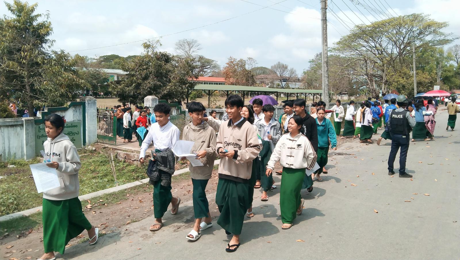 စာမေးပွဲအေးချမ်းစွာဖြေဆိုနိုင်ရေးအတွက် မြို့နယ်စီမံခန့်ခွဲရေးနှင့်အုပ်ချုပ်ရေးကော်မတီဥက္ကဋ္ဌနှင့်တာဝန်ရှိသူများ၊ မြို့နယ်ရဲတပ်ဖွဲ့ဝင်များ၊ ကြီးကြပ်ဆရာ၊ဆရာမများနှင့် ကျန်းမာရေးဝန်ထမ်းများက စောင့်ကြပ်ကြည့်ရှုလျက်ရှိကြောင်း သိရသည်။