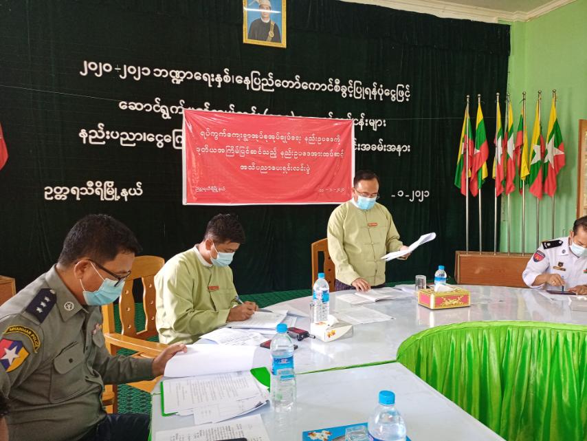 အဆိုပါ အခမ်းအနားသို့ မြို့နယ်အုပ်ချုပ်ရေးမှူး ဦးနိုင်ဦး၊ မြို့နယ်အဆင့်ဌာနဆိုင်ရာများ၊ ရပ်ကွက်/ကျေးရွာအုပ်စု အုပ်ချုပ်ရေးမှူးများ၊ ရပ်/ကျေးစာရေးများနှင့် တာဝန်ရှိသူများ တက်ရောက်ခဲ့ကြပြီး ရှင်းလင်းပွဲ အခမ်းအနားတွင် မြို့နယ်အုပ်ချုပ်ရေးမှူး ဦးနိုင်ဦးမှ ရပ်ကွက် ကျေးရွာအုပ်စု၊ အုပ်ချုပ်ရေးနည်းဥပဒေကို ဒုတိယအကြိမ်ပြင်ဆင်သည့် နည်းဥပဒေ အား ထပ်ဆင့် ရှင်းလင်းဆွေးနွေးခဲ့ကြသည်။