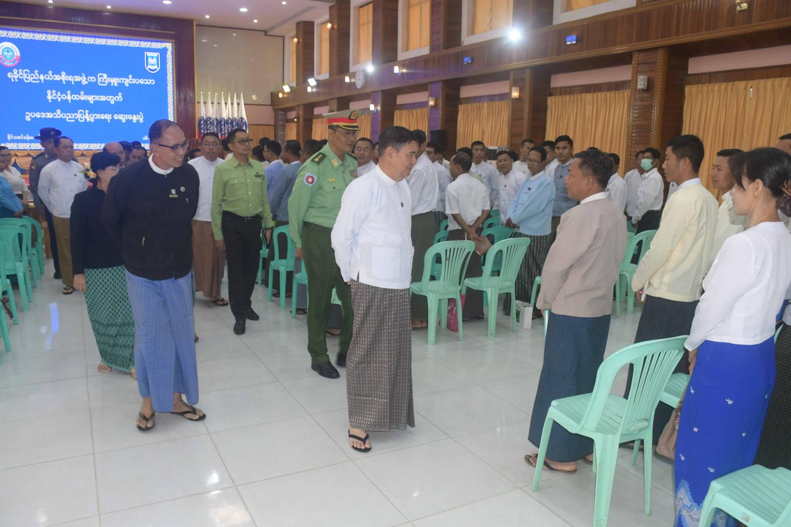 နိုင်ငံ့ဝန်ထမ်းအရာရှိများအတွက် ဥပဒေအသိပညာပြန့်ပွားရေး ဆွေးနွေးပွဲဖွင့်ပွဲအခမ်းအနားကို ယနေ့နံနက်ပိုင်းက စစ်တွေမြို့ ခိုင်သဇင်ခန်းမ၌ကျင်းပသည်။