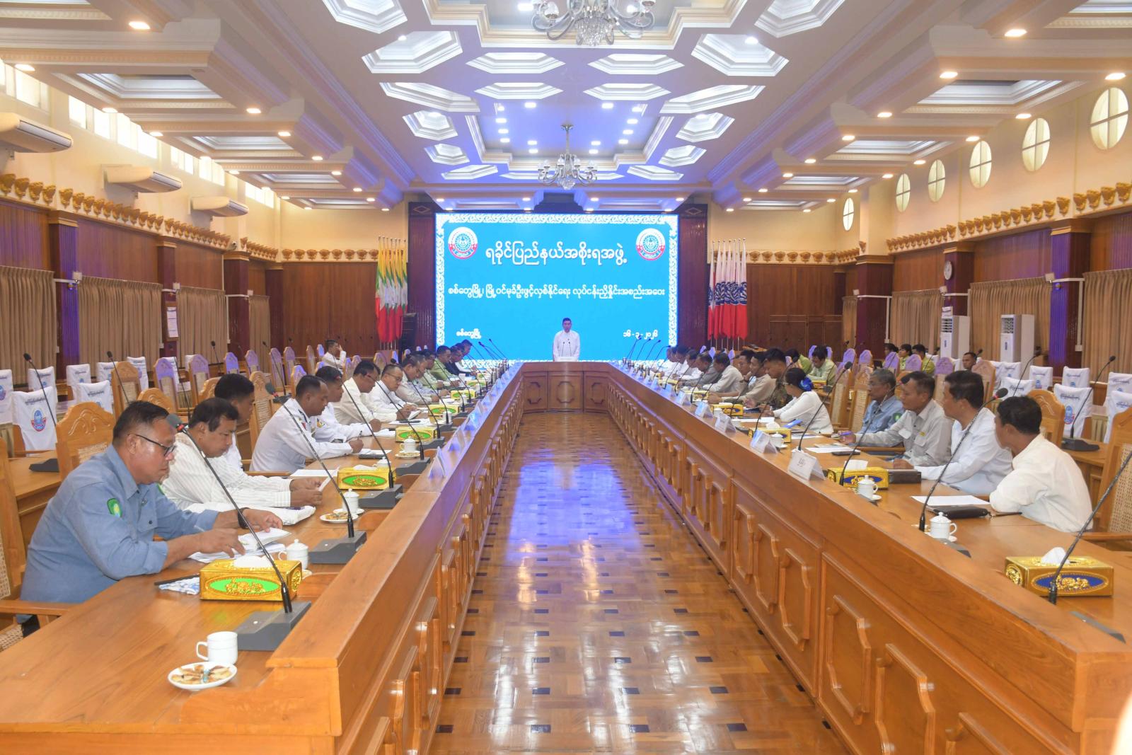 ယင်းနောက် စစ်တွေတပ်နယ်မှ ဆောက်လုပ်ရေးတာဝန်ခံက မြို့ဝင်မုခ်ဦးတည်ဆောက်ပြီးစီးမှု အခြေအနေအားလည်းကောင်း၊ ပြည်နယ်စည်ပင်သာယာရေးအဖွဲ့ ညွှန်ကြားရေးမှူးက မြို့ဝင်မုခ်ဦး ဖွင့်ပွဲအခမ်းအနား ကျင်းပနိုင်ရေး လျာထားဆောင်ရွက်ထားရှိမှု အခြေအနေများအားလည်းကောင်း ရှင်းလင်းတင်ပြကြသည်။ တင်ပြချက်များအပေါ် မြို့ဝင်မုခ်ဦးလုပ်ငန်းအကောင်အထည် ဖော်ဆောင်ရွက်ရေးကော်မတီဥက္ကဋ္ဌ ပြည်နယ်သယံဇာတရေးရာဝန်ကြီးက ဖြည့်စွက်ရှင်းလင်းတင်ပြပြီး ပြည်နယ်အစိုးရအဖွဲ့ဝင်များနှင့် တက်ရောက်လာကြသူများက ဝိုင်းဝန်းအကြံပြု ဆွေးနွေးတင်ပြကြသည်။
