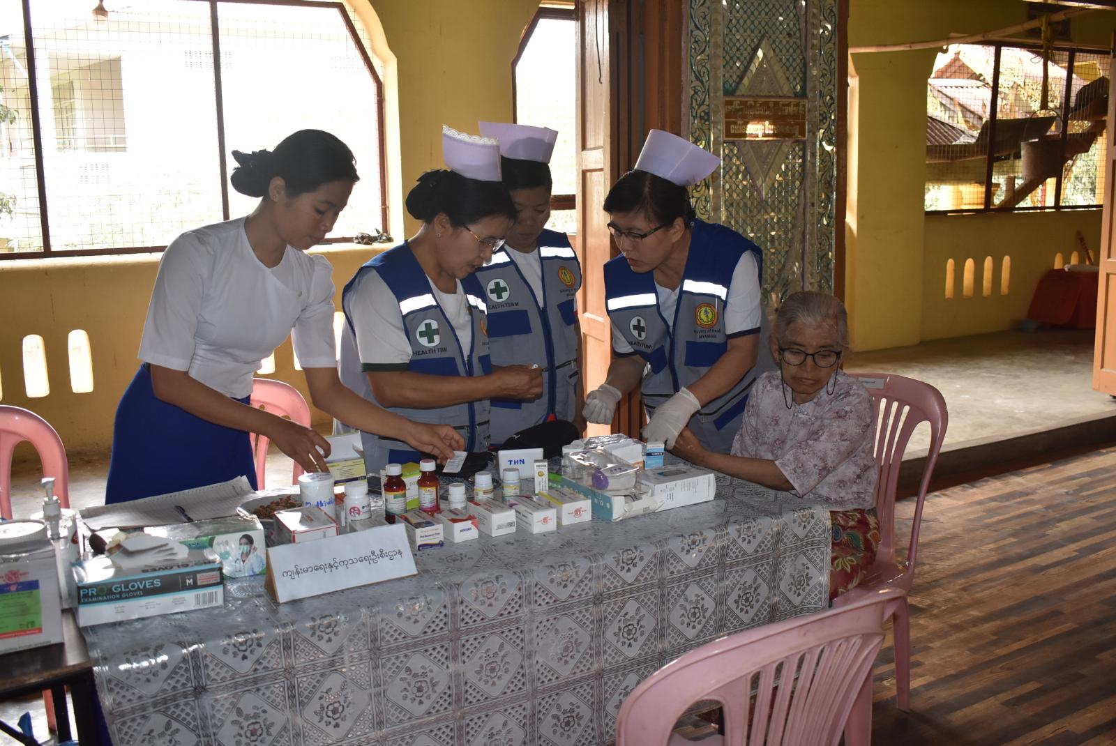 ထိုနောက် မြို့နယ်ဘေးအန္တရာယ်ဆိုင်ရာစီမံခန့်ခွဲမှုဦးစီးဌာနမှ ဌာနဆိုင်ရာတာဝန်ရှိသူများနှင့် အပူရှောင်လာသူများအား မုန့်လက်ဆောင်ဖြင့်လည်းကောင်း၊မြို့နယ် အမျိုးသမီးရေးရာ၊ မိခင်နှင့် ကလေးစောင့်ရှောက်ရေးအသင်းတာဝန်ရှိသူများက အချိုရည်များဖြင့်လည်းကောင်း ဧည့်ခံကျွေးမွေးလျက်ရှိသည့်အပြင်မြို့နယ်ကျန်းမာရေးဌာနမှ ဘိုးဘွားများအား ဆီးချို၊ သွေးချိုစစ်ပေးခြင်း၊ သွေးပေါင်ချိန်ပေးခြင်း၊ မြို့နယ်တိုင်းရင်းဆေးကုဌာနမှ ကျန်းမာရေးစစ်ဆေး၍ တိုင်းရင်းဆေးများ အခမဲ့ပေးအပ်ခြင်း၊ မြို့နယ်ဘေးအန္တရာယ်ဆိုင်ရာစီမံခန့်ခွဲမှုဦးစီးဌာနမှ အပူရှောင်စခန်းအတွက် သောက်ရေသန့်၊ ဓာတ်ဆားရည်အဖြစ် ရွိင်ရယ်ဒီများ၊ယပ်တောင်များ အသင့်စီစဥ်ဆောင်ရွက်ထားရှိပေးလျက်ရှိကြောင်း သိရသည်။
