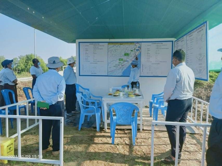ဧရာဝတီတိုင်းဒေသကြီး၊ ဖျာပုံခရိုင်အတွင်းရှိ ၂၀၂၀ - ၂၀၂၁ ဘဏ္ဍာနှစ်အတွင်း အပြီးဆောင်ရွက်ရမည့် ဆည်မြောင်းလုပ်ငန်းများနှင့် ပုံမှန်ဆောင်ရွက်ရသည့်လုပ်ငန်းများ သတ်မှတ်စံချိန်စံညွှန်းကိုက်ညီရေးနှင့် အချိန်မီပြီးစီးရေးအတွက် ဧရာဝတီတိုင်းဒေသကြီး ဆည်မြောင်းနှင့် ရေအသုံးချမှုစီမံခန့်ခွဲရေးဦးစီးဌာနက ညွှန်ကြားရေးမှူး ဦးကြည်ဆွေနှင့် ဒုတိယညွှန်ကြားရေးမှူး ဒေါက်တာအောင်သန်းဦး တို့သည် ဇန်နဝါရီ(၉)ရက်မှ (၁၁)ရက်နေ့အထိ ဖျာပုံခရိုင်အတွင်းရှိ ဆည်မြောင်းလုပ်ငန်းဆောင်ရွက်နေမှု အခြေအနေများအား ကွင်းဆင်းစစ်ဆေးရာ ဖျာပုံ၊ ကျိုက်လတ်၊ ဘိုကလေးနှင့် ဒေးဒရဲမြို့နယ် ဦးစီးအရာရှိများက လုပ်ငန်းဆောင်ရွက်ထားရှိမှု အခြေအနေများ ရှင်းလင်း ဆွေးတင်ပြကြသည်။