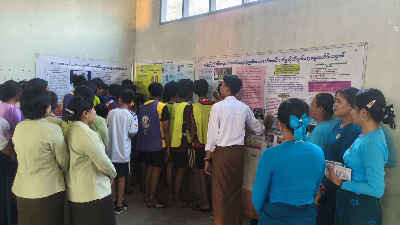 ဆက်လက်၍ ပြန်ကြားရေးနှင့်ပြည်သူ့ဆက်ဆံရေးဦးစီးဌာနဝန်ထမ်းများမှ စာဖတ်ရှိန်မြှင့်တင်ရေးအတွက် ကျောင်းသား၊ ကျောင်းသူလေးများ အသိပညာဗဟုသုတရရှိစေမည့် ကလေးအလုပ်သမားပပျောက်ရေး၊ မူးယစ်ဆေးဝါးအန္တရာယ်တားဆီးကာကွယ်ရေးနှင့် လူကုန်ကူးမှုအသိပညာပေးနံရံကပ်စာစောင်များ ပြသခဲ့ရာ ကျောင်းသား၊ ကျောင်းသူလေးများက စိတ်ပါဝင်စားစွာ ကြည့်ရှုလေ့လာခဲ့ကြကြောင်း သိရသည်။