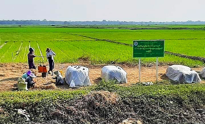 ဧရာဝတီတိုင်းဒေသကြီး၊ ဇလွန်မြို့နယ် စိုက်ပျိုးရေးဦးစီးဌာနမှ ၂၀၂၀-၂၀၂၁ ခုနှစ် နွေစပါးရာသီတွင် မြေဆီလွှာ ဖွံ့ဖြိုးတိုးတက်ရေးနှင့် ဓာတုသွင်းအားစု လျော့ချရေး လုပ်ငန်းစဉ်ဖြစ်သော (EM) ဘိုကာရှီ ကောက်ရိုးမြေဆွေးပုံ ပြုလုပ်သုံးစွဲခြင်းအား ကော့ကပ်ကြီးကျေးရွာအုပ်စု တောင်သူဦးကျော်စိုးထွန်း၏ နွေစပါးစိုက်ခင်းကွင်းအမှတ် (၁၆၆၅) တွင် ယနေ့နံနက် ၁၀ နာရီအချိန်ခန့်တွင် ပြုလုပ် ဆောင်ရွက် ခဲ့ကြောင်း သိရသည်။