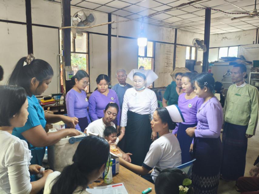 အဆိုပါကာကွယ်ဆေးထိုးနှံနေမှုအခြေအနေအား မြို့နယ်စီမံခန့်ခွဲရေးနှင့် အုပ်ချုပ်ရေးကော်မတီဥက္ကဋ္ဌ ဦးဖြိုးဝေလင်းနှင့် အဖွဲ့ဝင်များ၊ သက်ဆိုင်ရာတာဝန်ရှိသူများ၊ အမျိုးသမီးရေးရာအဖွဲ့ဝင်များ၊ မိခင်နှင့်ကလေးစောင့်ရှောက်ရေးအသင်းဝင်များက လာရောက်ကြည့်ရူအားပေးခဲ့ပြီး လိုအပ်သည်များ ကူညီဆောင်ရွက်ပေးခဲ့ကြောင်း သိရသည်။