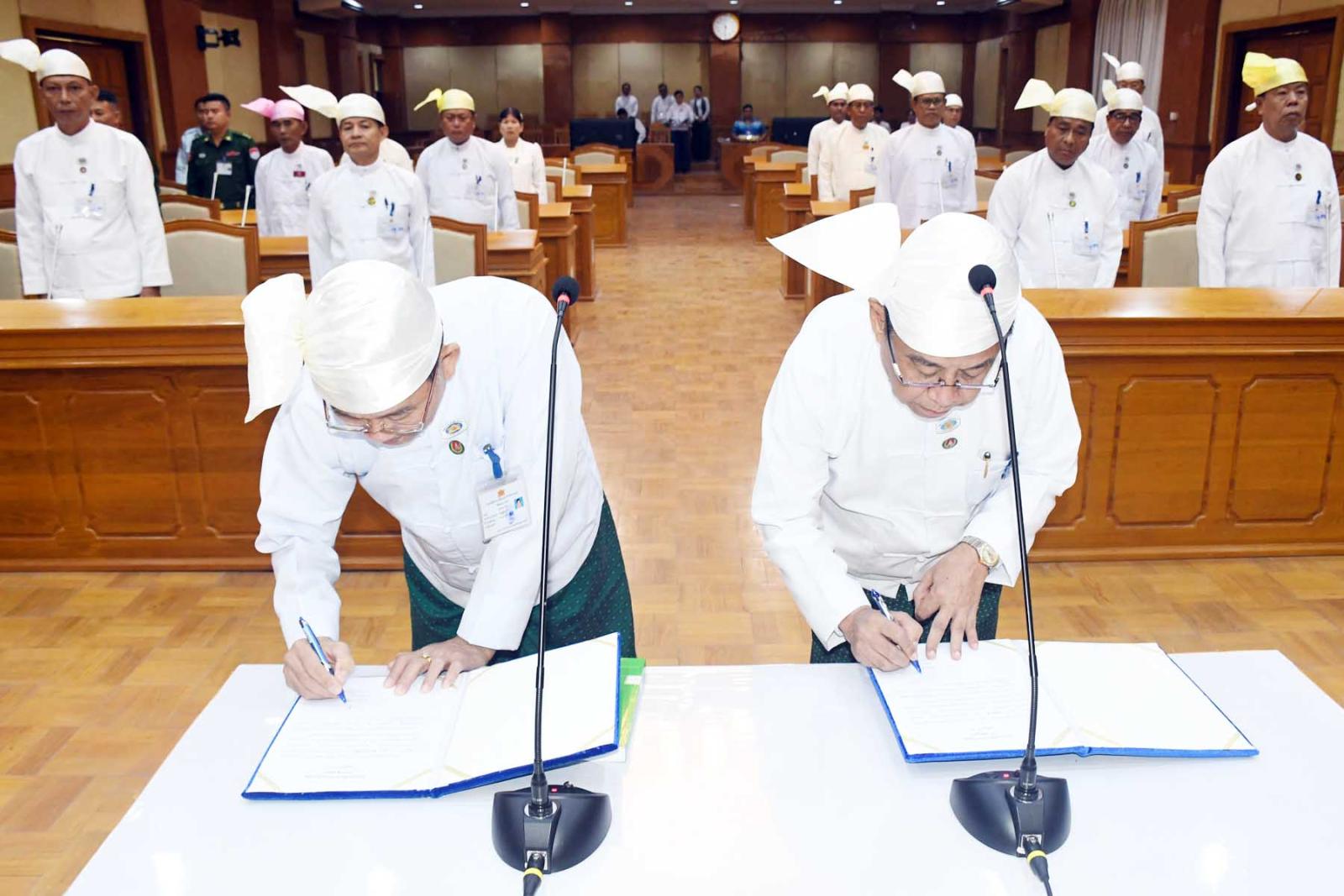 ထို့နောက် သဘာပတိရှေ့မှောက်တွင် တိုင်းဒေသကြီး လွှတ်တော်ကိုယ်စားလှယ်များက ကတိသစ္စာပြုခြင်းနှင့် ကတိသစ္စာပြုလွှာပေါ်တွင် လက်မှတ်ရေးထိုးခြင်း၊ တိုင်းဒေသကြီးလွှတ်တော်ကိုယ်စား လှယ်များက ဦးမြတ်ကို၊ ထားဝယ်မြို့နယ် လွှတ်တော်ကိုယ်စားလှယ်အမှတ် (၁)အား တတိယအကြိမ် တနင်္သာရီတိုင်းဒေသကြီးလွှတ်တော်ဥက္ကဋ္ဌ အဖြစ်လည်းကောင်း၊ ဦးခင်မောင်မြင့်၊ ရေဖြူမြို့နယ်လွှတ်တော်ကိုယ်စားလှယ်အမှတ်(၁)အား တတိယအကြိမ် တနင်္သာရီတိုင်းဒေသကြီးလွှတ်တော် ဒုတိယဥက္ကဋ္ဌ အဖြစ်လည်းကောင်း၊ အသီးသီးရွေးကောက်တင်မြှောက်ခဲ့ကြသည်။