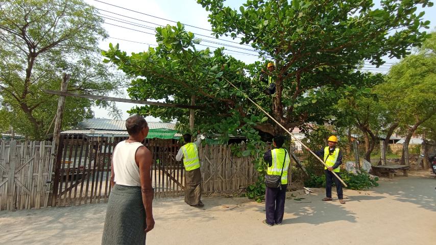 မန္တလေးတိုင်းဒေသကြီး၊ ကျောက်ဆည်ခရိုင်၊ မြစ်သား မြို့နယ်လျှပ်စစ်မန်နေဂျာရုံးမှ ပြည်သူများ လျှပ်စစ်မီး သုံးစွဲရာတွင် အန္တရာယ်ကင်းရှင်းစေရေး၊ ဓာတ်အားပြည့်ဝစွာသုံးစွဲနိုင်ရေး၊ ဓာတ်အားပျောက်ဆုံးမှုလျော့နည်းကျဆင်းစေရေးအတွက် လျှပ်စစ်ဓာတ်အားလိုင်းနှင့်မလွတ်ကင်းသော သစ်ပင်၊ သစ်ကိုင်းများအား ခုတ်ထွင်ရှင်းလင်းခြင်း၊ ယိမ်းယိုင်နေသည့် ဓာတ်တိုင် များအားတည့်မတ်ခြင်း၊ လျော့ကျနေသည့်လျှပ်စစ် ကြိုးများအား ပြန်လည်ပြုပြင်ပေးခြင်းလုပ်ငန်းများ ဆောင်ရွက်ပေးလျက်ရှိရာ မတ် ၂၀ ရက် နံနက် ၁၀ နာရီက ရပ်ကွက် ၁ ရပ်ကွက်နှင့် ကျေးရွာ ၁၉ ရွာ၌ စနစ်တကျခုတ်ထွင်ရှင်းလင်းသည်။
