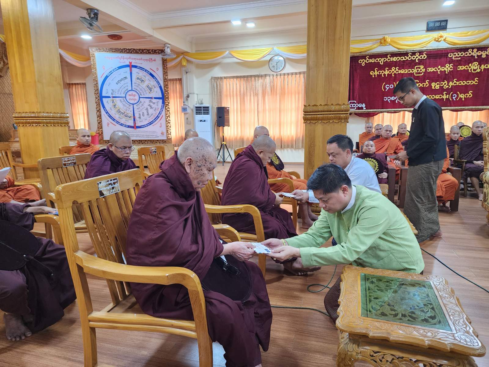 အဆိုပါ အခမ်းအနားသို့ မြို့နယ်ဩဝါဒစရိယဆရာတော်ကြီးများ၊ မြို့နယ်သံဃနာယက ဆရာတော်များ၊ စာမေးပွဲကြီးကြပ်ဆရာတော်များ၊ မြို့နယ်စီမံခန့်ခွဲရေးနှင့်အုပ်ချုပ်ရေးကော်မတီဥက္ကဌနှင့် အဖွဲ့ဝင်များ၊ မြို့နယ်အဆင့်ဌာနဆိုင်ရာများနှင့် ရပ်ကွက်အုပ်ချုပ်ရေးမှူးများ စုစုပေါင်း (၈၅) ဦးခန့် တက်ရောက်ခဲ့ကြောင်း သိရသည်။