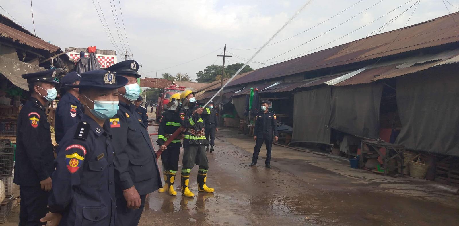 ရွှေဘိုမြို့နယ် မီးသတ်ဦးစီးမှူး ဦးစီးအရာရှိ ဦးဆာမူအဲလ်နှင့် အရန်မီးသတ်တပ်ဖွဲ့ဝင် ၁၀ ဦး၊ သန္ဓေတပ်ဖွဲ့ဝင်အင်အား ၁၅ ဦးတို့သည် မြို့နယ်စည်ပင်သာယာရေး ကော်မတီဝင်များ၊ စျေးမိ စျေးဖများ၊ ဆက်စပ်သည့် ဌာနဆိုင်ရာများပူးပေါင်းကာ မီးဘေးကြိုတင်ကာကွယ်ရေး မီးသတ်ရေကန်များအားစစ်ဆေးခြင်း၊လုပ်ငန်းသုံးပစ္စည်းများ အရည်အသွေးကောင်းမွန်မှု ရှိ မရှိ၊ လျှပ်စစ်မီးကြိုးများစနစ်တကျ သွယ်တန်းထားရှိ အခြေအနေများနှင့် စျေးအတွင်း မီးလောင် လွယ်စေမည့် အမှိုက်နှင့် မီးလောင်စေတတ်သော ပစ္စည်းများထားရှိမှု မရှိစေရေးတို့ကို ကွင်းဆင်း စစ်ဆေးခဲ့ကြပြီး စစ်ဆေးတွေ့ရှိချက်များအပေါ် ပူးပေါင်းညှိနှိုင်းဆောင်ရွက်နိုင်ရေး ဆွေးနွေးခဲ့ကြကြောင်း သိရှိပါသည်။