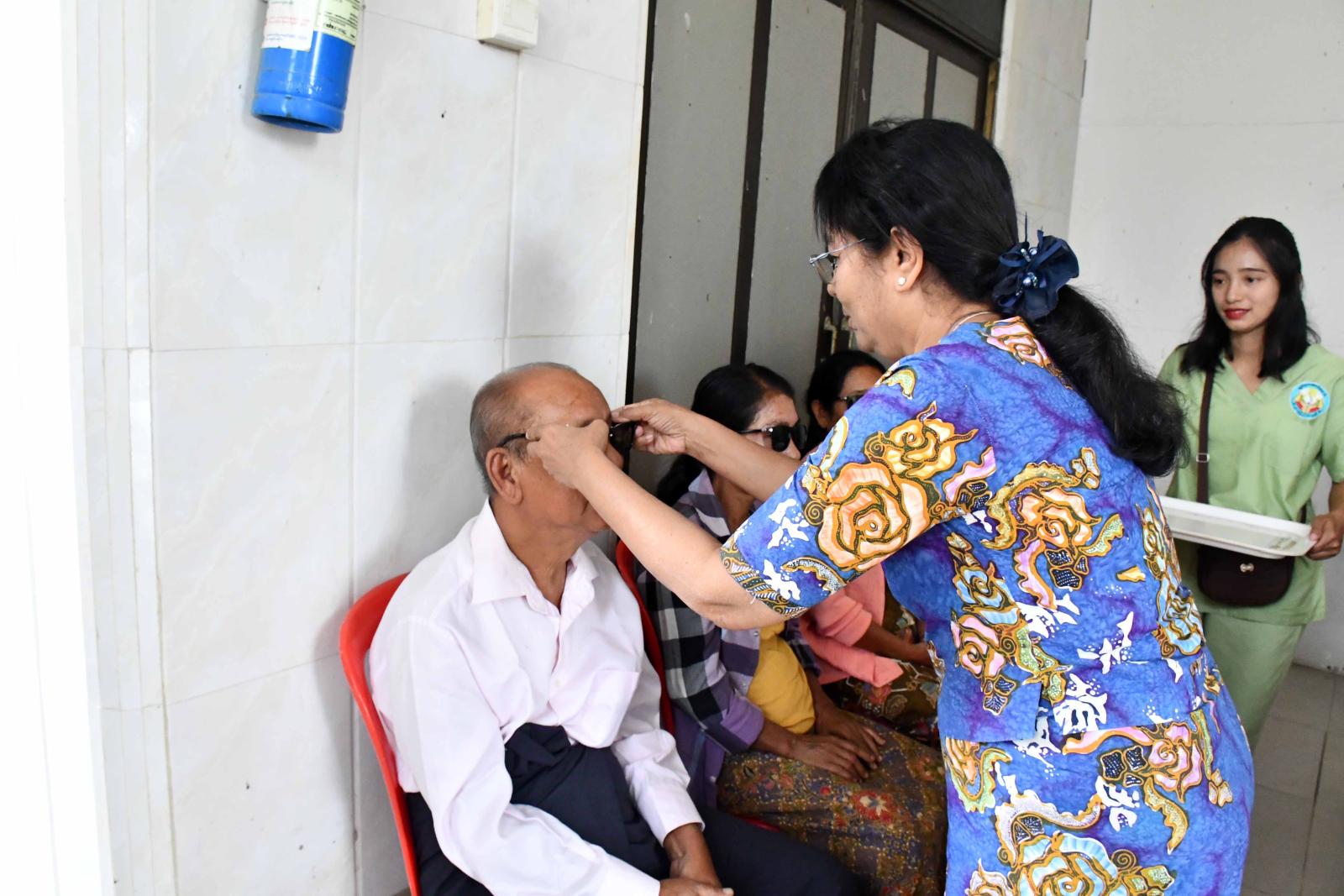 ဦးစွာ ပြည်နယ်ဝန်ကြီးသည် မျက်စိဝေဒနာရှင်များအား ရွှေကရုဏာစေတနာဆေးခန်းမှ ကျန်းမာရေးဝန်ထမ်းများက ကိုယ်အလေးချိန်တိုင်းတာခြင်း၊ သွေးပေါင်ချိန်တိုင်းတာခြင်းနှင့် ကျန်းမာရေးစစ်ဆေးခြင်းများကို ကူညီစောင့်ရှောက်ပေးနေမှုကို လှည့်လည်ကြည့်ရှုအားပေးကြသည်။ ယင်းနောက် မျက်စိဝေဒနာရှင်များကို စစ်တွေမြို့၊ မျက်စိအထူးကုဆရာဝန်ကြီး ဒေါက်တာသိန်းနိုင် ဦးဆောင်ပြီး ဆရာဝန်၊ သူနာပြုများက  စစ်တွေမြို့နယ်အတွင်းရှိ မျက်စိဝေဒနာရှင်များအား အခမဲ့ ခွဲစိတ်ကုသပေးကြသည်။