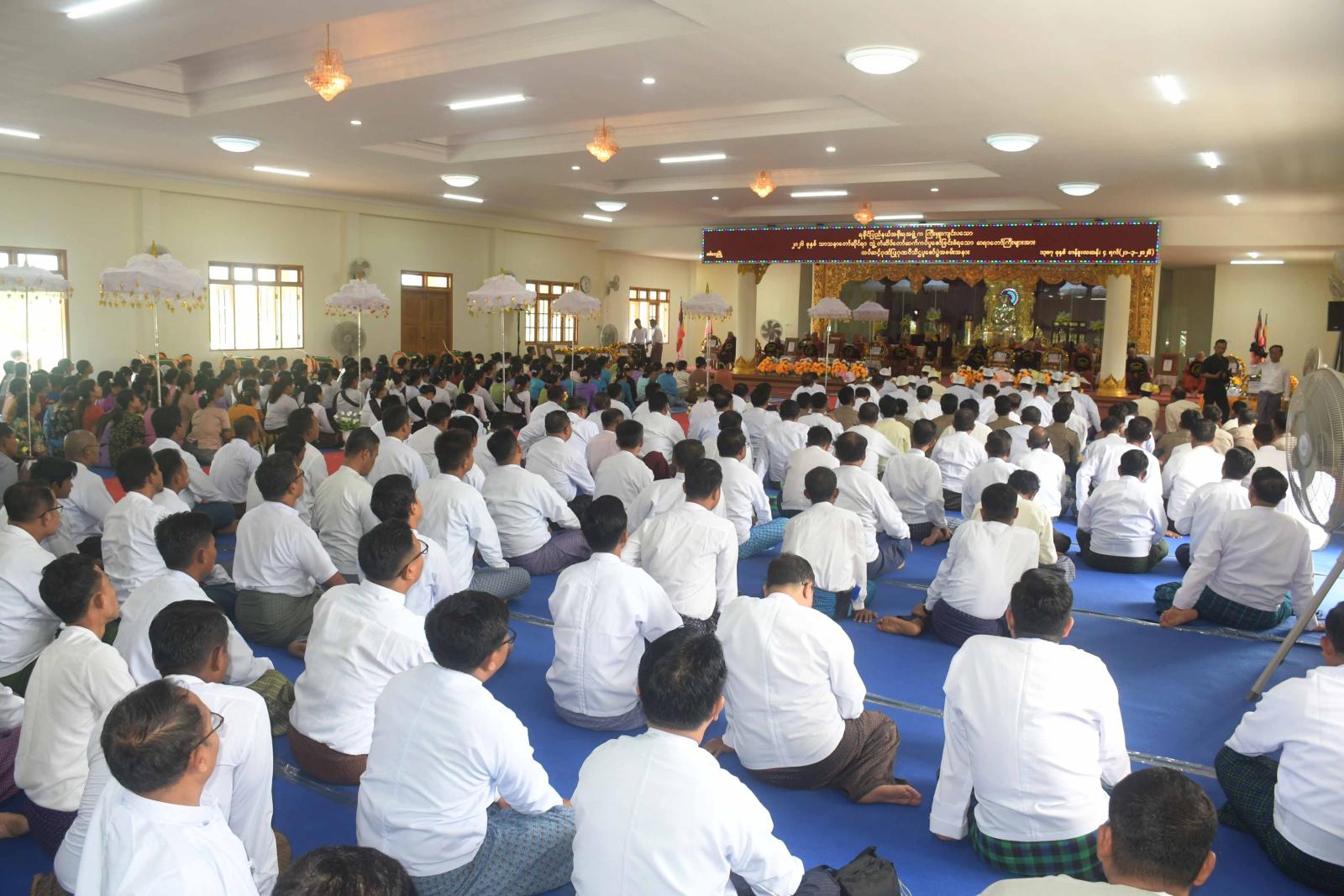 ယင်းနောက် စစ်တွေမြို့၊ ဝိမလဓမ္မနာဒ (ဓာတ်လယ်) ကျောင်းတိုက် ပဓာနနာယက ဆရာတော်မဟာကမ္မဋ္ဌာနာစရိယဘဒ္ဒန္တသုဝဏ္ဏ မဟာထေရ်မြတ်ထံမှ ပြည်နယ်ဝန်ကြီးချုပ် အမှူးပြုသော ဧည့်ပရိတ်သတ်များကအနုမောဒနာတရားနာကြားကြကာ လှူဒါန်းမှုအစုစုတို့အတွက် ရေစက်သွန်းချအမျှပေးဝေကြသည်။