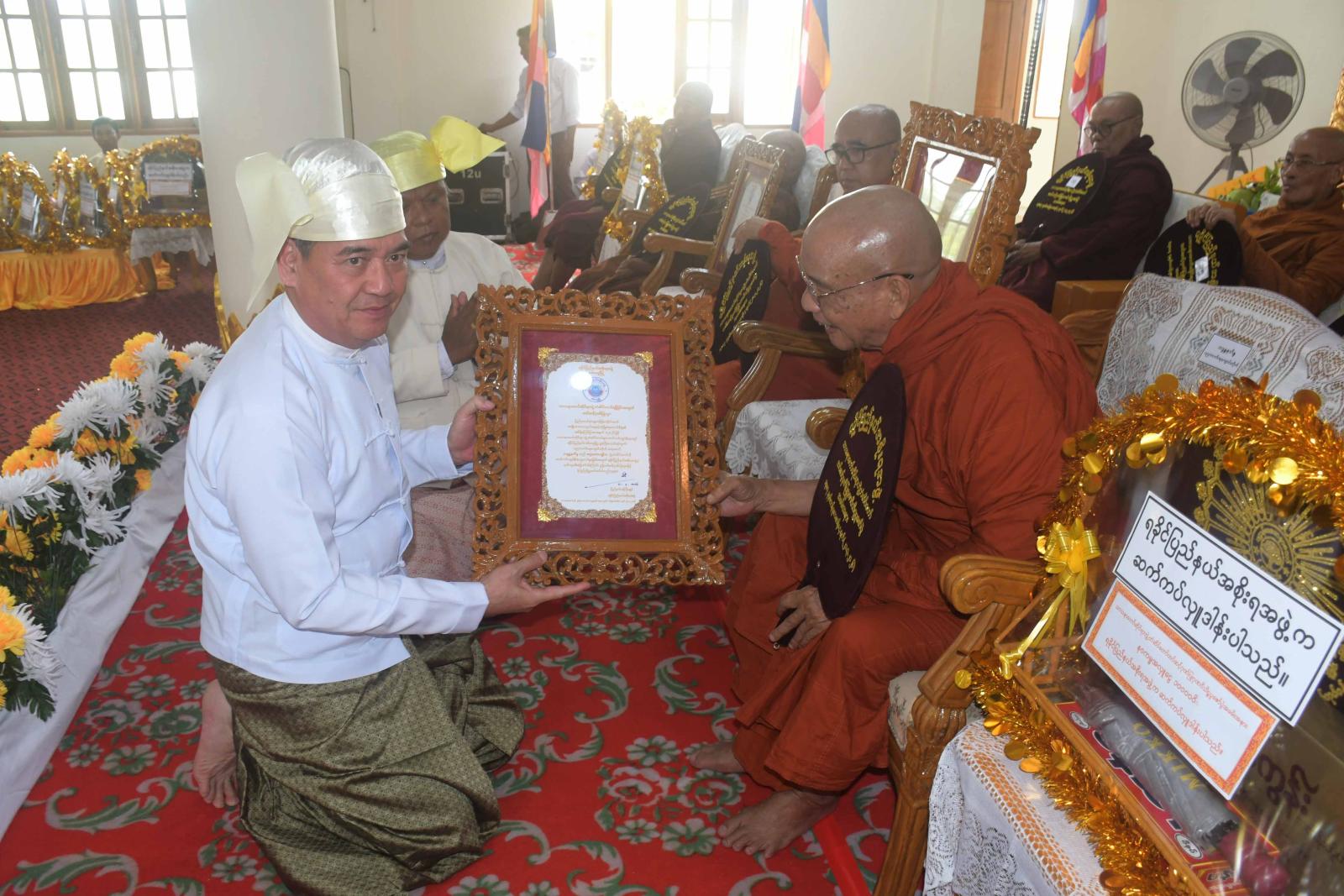 ထို့နောက် ၂၀၂၆ ခုနှစ်၊ သာသနာတော်ဆိုင်ရာ ဘွဲ့တံဆိပ်တော်ရ ဆရာတော်ကြီးများနှင့် သီလရှင်ဆရာကြီးတို့အား ပြည်နယ်ဝန်ကြီးချုပ်နှင့်ဇနီး၊ ပြည်နယ်လွှတ်တော်ဥက္ကဋ္ဌ၊ တိုင်းမှူးနှင့် တာဝန်ရှိသူများက ဘွဲ့တံဆိပ်တော်များ ဆက်ကပ်ကြပြီး ပြည်နယ်ဝန်ကြီးချုပ်နှင့်ဇနီး တာဝန်ရှိသူများက ကြွရောက်တော်မူကြသော သံဃာတော်အရှင်သူမြတ်များအား လှူဖွယ် ပစ္စည်းများကို ဆက်ကပ်လှူဒါန်းကြသည်။