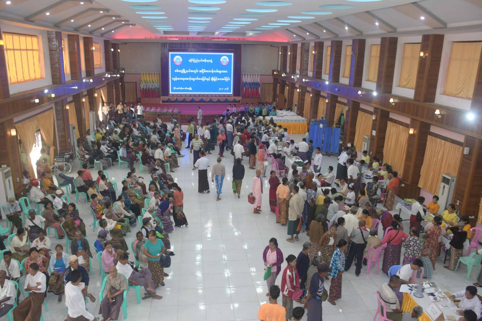 အငြိမ်းစားဝန်ထမ်းများအား ပင်စင်လစာထုတ်ပေးခြင်း၊ ကျန်းမာရေးစောင့်ရှောက်မှုပေးခြင်းနှင့် ချီးမြှင့်ပေးအပ်ခြင်း ဆောင်ရွက်ရာတွင် ခုတင် ၅၀၀ ဆံ့ အထွေထွေရောဂါကုဆေးရုံကြီးမှ သမားတော်ကြီးများ၊ အထူးကုဆရာဝန်ကြီးများနှင့် ကျန်းမာရေးဝန်ထမ်းများက သွေးပေါင်ချိန် တိုင်းတာပေးခြင်း၊ သွေးအတွင်း အောက်ဆီဂျင်ပါဝင်မှု တိုင်းတာပေးခြင်း၊ ဆီးချို၊ သွေးချိုစစ်ဆေးပေးခြင်း၊ နှလုံးရောဂါစစ်ဆေးခြင်းနှင့် အီးစီဂျီရိုက်ပေးခြင်းများကို ဆောင်ရွက်ပေးကြပြီး လိုအပ်သော ဆေးဝါးများကိုလည်း အခမဲ့ထုတ်ပေးကြသည်။ အလားတူ တိုင်းရင်းဆေးပညာဦးစီးဌာနမှ ပြည်နယ် ဦးစီးမှူးနှင့် ဝန်ထမ်းများကလည်း အငြိမ်းစား ဝန်ထမ်းများအား တိုင်းရင်းဆေးဝါးများနှင့် ကုသပေးခြင်းများကို ဆောင်ရွက်ပေးကြပြီး တိုင်းရင်းဆေးများကို အခမဲ့ချီးမြှင့်ပေးအပ်ခဲ့ကြသည်။