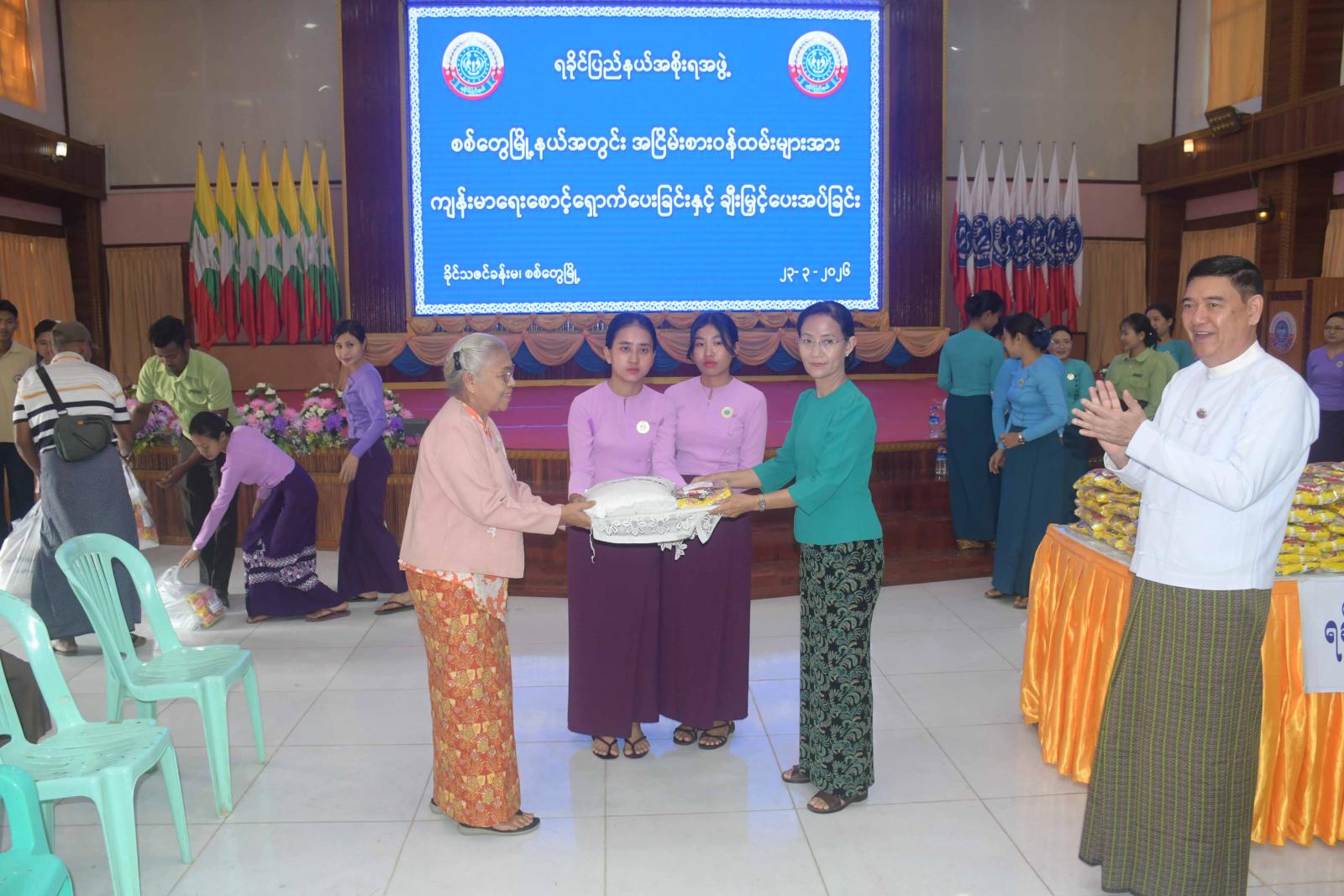 စစ်တွေမြို့နယ်အတွင်း အငြိမ်းစားဝန်ထမ်းများအား ပင်စင်လစာထုတ်ပေးခြင်း၊ ကျန်းမာရေးစောင့်ရှောက်မှုပေးခြင်းနှင့် ချီးမြှင့်ပေးအပ်ခြင်းကို ယနေ့နံနက်ပိုင်းက စစ်တွေမြို့၊ ခိုင်သဇင်ခန်းမ၌ကျင်းပရာ ရခိုင်ပြည်နယ်ဝန်ကြီးချုပ် ဦးထိန်လင်းနှင့်ဇနီး ပြည်နယ်အမျိုး သမီးရေးရာအဖွဲ့နာယက ဒေါ်ဆွေဆွေမြတ်၊ ပြည်နယ်တရားလွှတ်တော် တရားသူကြီးချုပ်၊ ပြည်နယ်အစိုးရအဖွဲ့ဝင်များနှင့်ဇနီးများ၊ ဌာနဆိုင်ရာများနှင့် လူမှုရေးအဖွဲ့အစည်းများမှ ကိုယ်စားလှယ်များ တက်ရောက်ကြည့်ရှု အားပေးကြသည်။