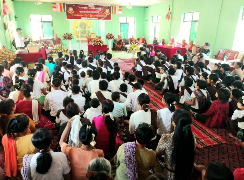 ထို့နောက် ဗုဒ္ဓဘာသာယဉ်ကျေးလိမ္မာသင်တန်း ပို့ချသင်ကြားပေးခဲ့သော သံဃာတော်အရှင်သူမြတ်များ၊ သီလရှင်ဆရာလေးများကို လှူဖွယ်ဝတ္ထုပစ္စည်းများ လှူဒါန်းခြင်းနှင့် နည်းပြဆရာ/ဆရာမများကို အမှတ်တရ လက်ဆောင်ပစ္စည်းများ ပေးအပ်ကာ အောင်သိဒ္ဓိကျောင်းတိုက် (ဘဝမဏ္ဍိုင်သာသနာပြု ဖောင်ဒေးရှင်း) ဆရာတော် ဘဒ္ဒန္တသုစိတ္တသာရ (မဟာသဒ္ဓမ္မဇောတိကဓဇ၊ မြို့နယ်သံဃနာယကအဖွဲ့ဥက္ကဋ္ဌ)က နိဂုံးချုပ် ဩဝါဒကထာ မိန့်ကြားပြီး ရေစက်သွန်ချ အမျှအတန်းများ ပေးဝေကာ အခမ်းအနားကို ဗုဒ္ဓသာသနံ စိရံတိဋ္ဌတု သုံးကြိမ်ရွတ်၍ ရုပ်သိမ်းခဲ့ကြောင်း သိရသည်။
