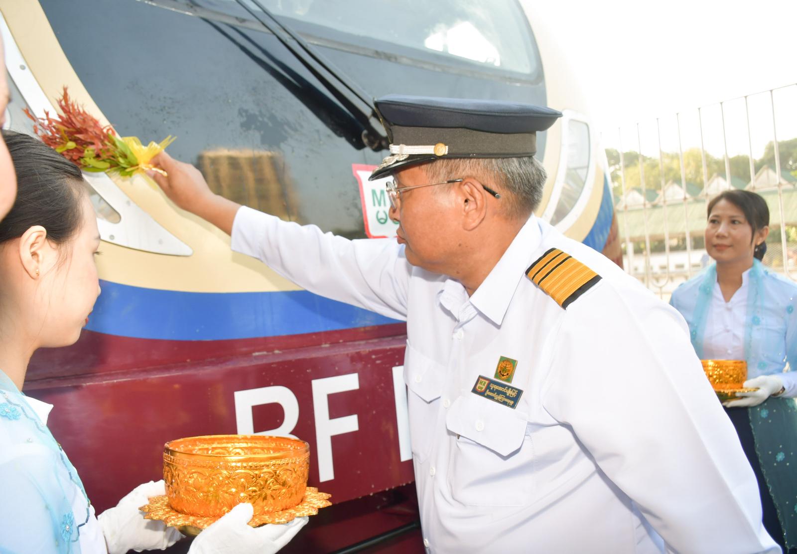 မြန်မာ့မီးရထားအနေဖြင့် ပြည်သူများ ခရီးသွားလာမှု လွယ်ကူအဆင်ပြေချောမွေ့စေရေးအတွက် ရထားလမ်းပိုင်းအသီးသီးတွင် လူစီးရထားများပြေးဆွဲဆောင်ရွက်ပေးလျက်ရှိရာ ပြည်တွင်း၌တပ်ဆင်ထုတ်လုပ်သည့် ဘက်ထရီလျှပ်စစ်စက်ခေါင်းများဖြင့် ရန်ကုန်မြို့ပတ်ရထားများတွင် စတင်ပြေးဆွဲခြင်းအခမ်းအနားကို ယနေ့နံနက် ၇ နာရီခွဲတွင် ရန်ကုန်တိုင်းဒေသကြီး၊ ရန်ကုန်ဘူတာကြီး အမှတ်(၁)စင်္ကြံ၌ ကျင်းပသည်။