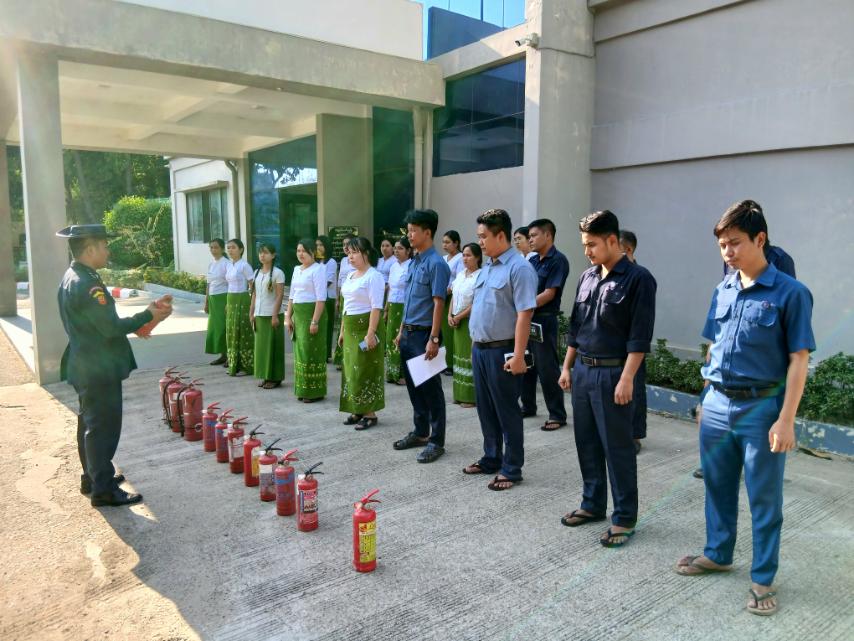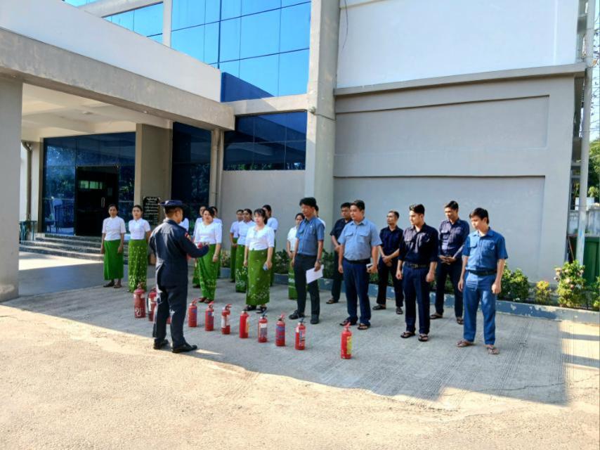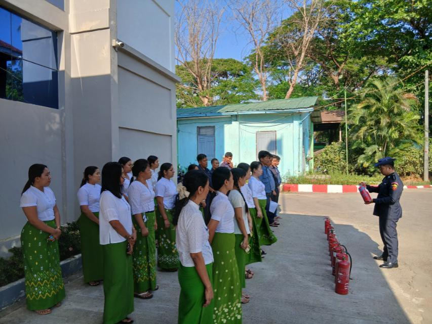 ထိုသို့ဆောင်ရွက်ရာတွင် မြို့နယ်မီးသတ်ဦးစီးမှူး ဦးဇော်မျိုးဝင်းဦးဆောင်၍ မီးသတ်တပ်ဖွဲ့ဝင်များက မီးဘေးအန္တရာယ်ကြိုတင်ကာကွယ်ရေးနှင့်ပတ်သက်၍ အသိပညာပေးဟောပြောခဲ့ပြီး မီးသတ်ဆေးဗူး ကိုင်တွယ်အသုံးပြုနည်းများအား သရုပ်ပြသခဲ့ကြသည်။