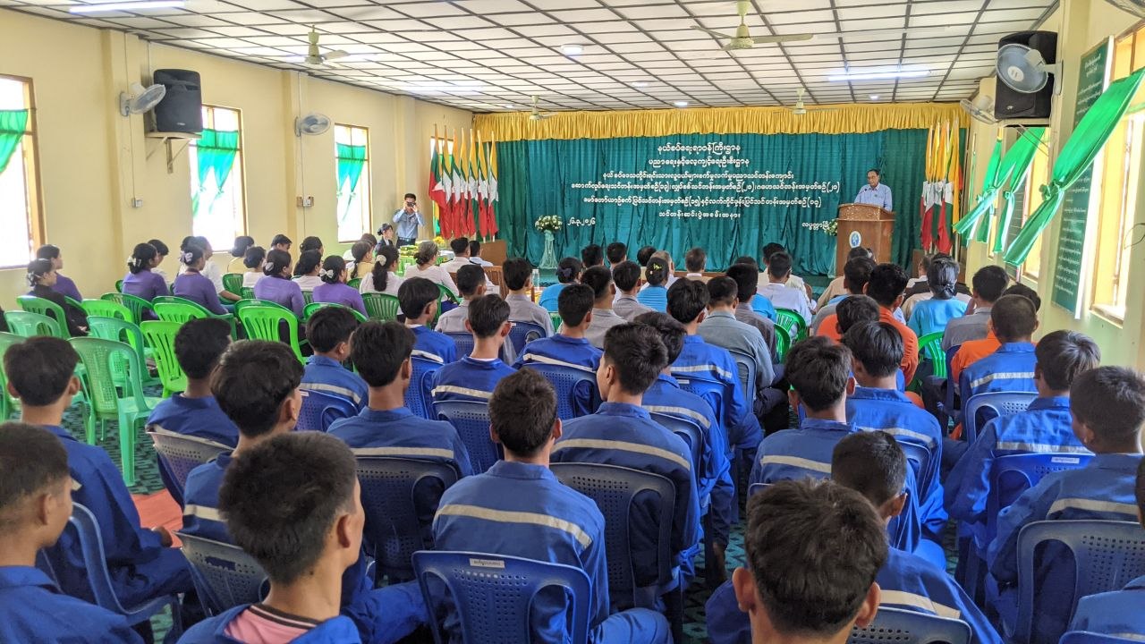 ဧရာဝတီတိုင်းဒေသကြီး၊ လပွတ္တာခရိုင်၊ လပွတ္တာမြို့နယ် (၃)မိုင်မြို့ (၁)ရပ်ကွက် စိန်ပန်းပြာလမ်းရှိ နယ်စပ်ရေးရာဝန်ကြီးဌာန ပညာရေးနှင့်လေ့ကျင့်ရေးဦးစီးဌာန နယ်စပ်ဒေသတိုင်းရင်းသားလူငယ်များ စက်မှုလက်မှုပညာသင်တန်းကျောင်း ဆောက်လုပ်ရေးသင်တန်းအမှတ်စဉ်(၁၃)၊ လျှပ်စစ်သင်တန်းအမှတ်စဉ်(၂၀)၊ ဂဟေသင်တန်းအမှတ်စဉ်(၂၀)၊ မော်တော်ယာဉ်စက်ပြင်သင်တန်းအမှတ်စဉ်(၁၅)နှင့် လက်ကိုင်ဖုန်းပြင်သင်တန်းအမှတ်စဉ်(၁၇) သင်တန်းဆင်းပွဲအခမ်းအနားကို ယမန်နေ့ နေ့လယ် ၁၂ နာရီခွဲက ကျင်းပပြုလုပ်သည်။