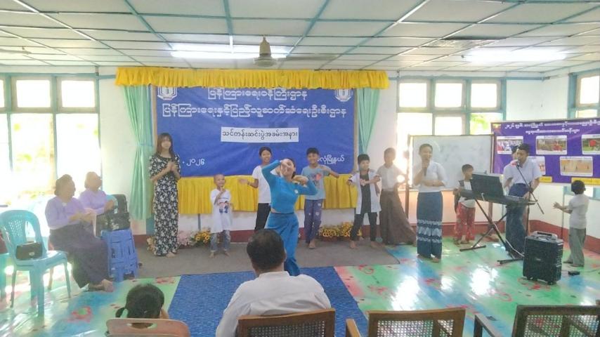 ထို့နောက် မြန်မာ့သိုင်းနှင့် ကရာတေးသင်တန်းသား၊ သင်တန်းသူများက သရုပ်ပြသခဲ့ကြပြီး တာဝန်ရှိသူများက သင်တန်းဆင်းလက်မှတ်များ ပေးအပ်ခဲ့ပြီးနောက် အားကစားနှင့်ကာယပညာဦးစီးဌာနမှ မြို့နယ်အားကစားမှူး ဒေါ်စုစုခင်က အားကစားသင်တန်းနည်းပြများအား ဂါရ၀ပြုလက်ဆာင်များပေးအပ်ခဲ့သည်။ ဆက်လက်၍ မောင်ကောင်းထက်မြတ်က သင်္ကြန်မိုးသီချင်းဖြင့် တီးခတ်ဖျော်ဖြေခဲ့ပြီး အမျိုးသမီးရေးရာဥက္ကဋ္ဌ ဒေါ်မေနှင်းဝေနှင့် အဖွဲ့ဝင်များက သင်တန်းသား၊ သင်တန်းသူများအား အအေးနှင့်မုန့်များ ကျွေးမွေးခဲ့ကြသည်။