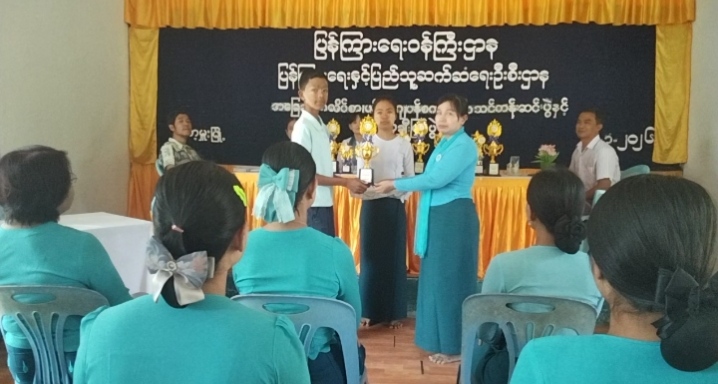 ဆက်လက်၍ အင်္ဂလိပ်စာဆရာမ ဒေါ်မိုးကေသီ၊ ပန်းချီပညာရှင် ဦးနေနွယ်အောင်၊ ဂျပန်စကားပြောသင်တန်းဆရာ ဦးစည်သူကျော်တို့က ဆုများရွေးချယ်ပေးအပ်ရခြင်းနှင့် ပတ်သက်၍ ရှင်းလင်းပြောကြားခဲ့ပြီး မြို့နယ်အမျိုးသမီးရေးရာအဖွဲ့ဥက္ကဋ္ဌနှင့် တာဝန်ရှိသူများက သင်တန်းသား၊ သင်တန်းသူများအား ကျောင်းသုံးဗလာစာအုပ်များ ပေးအပ်ခဲ့ပြီး မြို့နယ်ပြန်ကြားရေးနှင့်ပြည်သူ့ဆက်ဆံရေးဦးစီးဌာနမှ ဦးစီးအရာရှိ ဒေါ်ဇာခြည်စိမ့်က သင်တန်း ဆရာ/ဆရာမများအား ဂုဏ်ပြုချီးမြှင့်ငွေများ ပေးအပ်ခဲ့ကြောင်း သိရသည်။