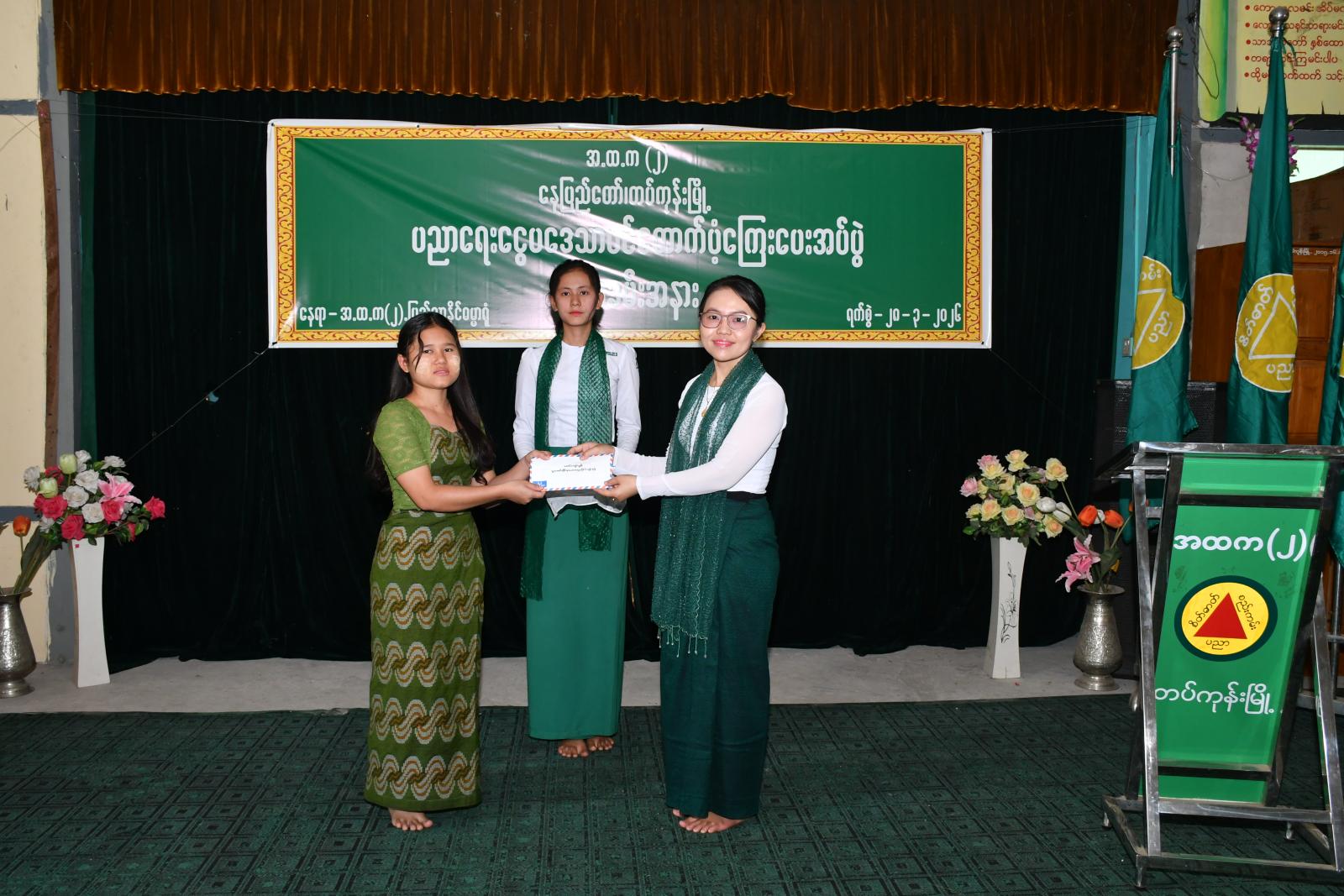 ဦးစွာ တာဝန်ရှိသူများနှင့် အမှတ်(၂)အခြေခံပညာအတန်းကျောင်းမှ ကျောင်းအုပ်ဆရာမကြီးက အမှတ်(၂)အခြေခံပညာအထက်တန်း ကျောင်းမှ တက္ကသိုလ်ဝင်တန်းအောင်မြင်ပြီး အသက်မွေးဝမ်းကျောင်းတက္ကသိုလ်များ တက်ရောက်သင်ကြားသည့် ကျောင်းသား၊ ကျောင်း သူများအား ပညာသင်စရိတ် ချီးမြှင့်ငွေ ပေးအပ်ရခြင်းရည်ရွယ်ချက်များ ရှင်းလင်းပြောကြားခဲ့ပြီးနောက် အမှတ်(၂)အခြေခံပညာအထက် တန်းကျောင်း ပညာရေးငွေပဒေသာပင် ထိမ်းသိမ်းရေးကော်မတီဥက္ကဋ္ဌ ဦးစန်းလွင်နှင့်တာဝန်ရှိသူများက ဆေး၊ ဆေးဘက်ဆိုင်ရာ၊ သွားဘက်ဆိုင်ရာ၊ နည်းပညာ၊ ပညာရေး၊ စီးပွားရေးနှင့်စိုက်ပျိုးရေးတက္ကသိုလ် အသီးသီးတက်ရောက်နေသည့် ကျောင်းသား၊ ကျောင်းသူစုစုပေါင်း ၁၃ ဦး၊ နှစ်ဝက်စာအတွက် ၃၉သိန်းပေးအပ်ချီးမြှင့်ခဲ့ကြောင်း သိရသည်။