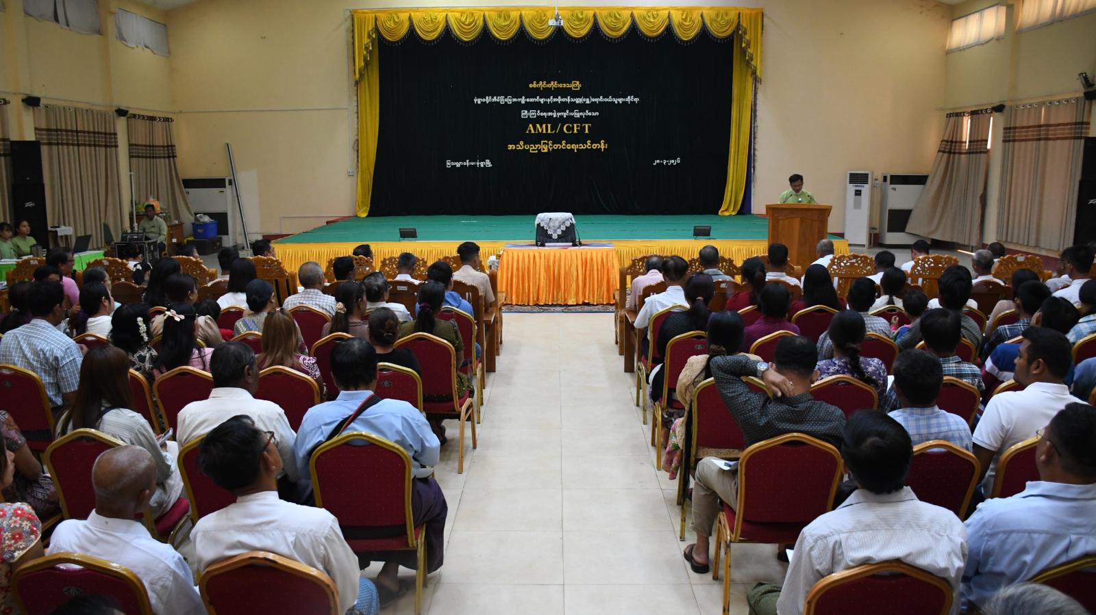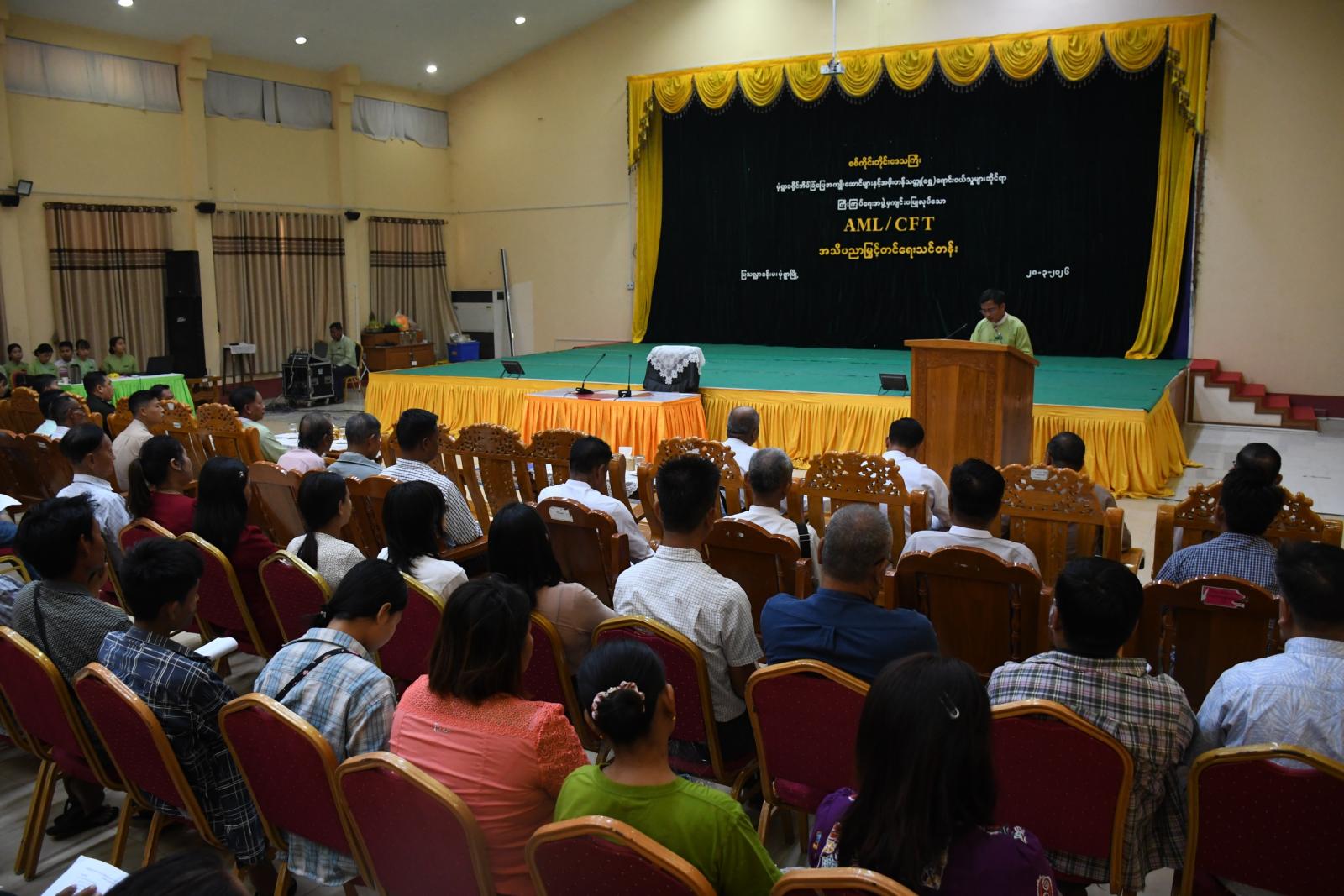 မုံရွာခရိုင်အိမ်ခြံမြေအကျိုးဆောင်များနှင့် အဖိုးတန်သတ္တု(ရွှေ)ရောင်းဝယ်သူများဆိုင်ရာ ကြီးကြပ်ရေးအဖွဲ့မှ ကြီးမှူးကျင်းပသည့် AML/CFT အသိပညာပေးမြှင့်တင်ရေးသင်တန်းဖွင့်ပွဲ အခမ်းအနားကို ယနေ့နံနက် ၉ နာရီက မုံရွာခရိုင် အထွေထွေအုပ်ချုပ်ရေးဦးစီးဌာန မြသလ္လာခန်းမ၌ ကျင်းပပြုလုပ်ခဲ့သည်။