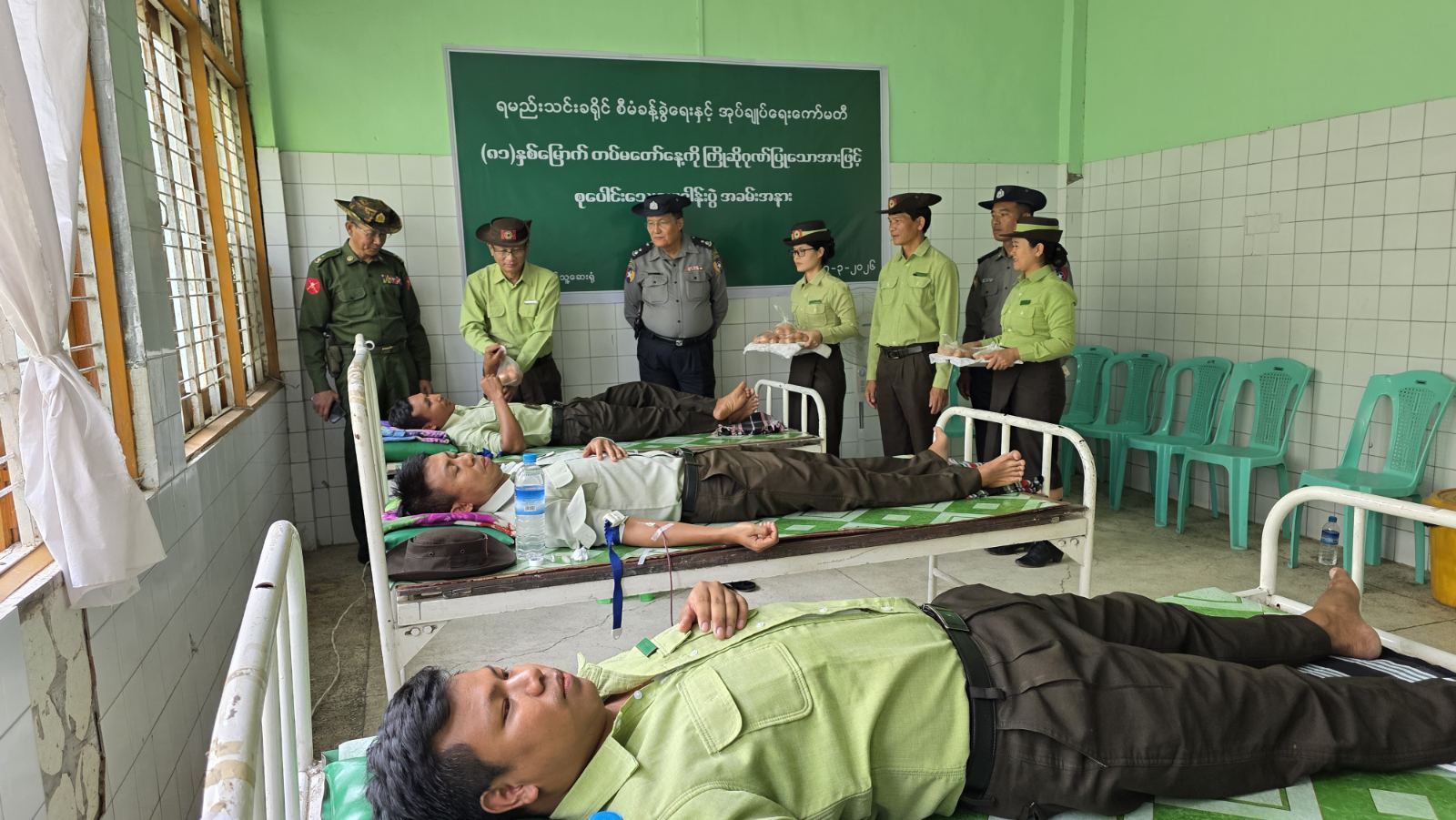 ရမည်းသင်းမြို့၊ ရွှေစည်းခုံရပ်ကွက်၊ ခရိုင်ပြည်သူ့ဆေးရုံကြီး၌ ခရိုင်/ မြို့နယ်စီမံခန့်ခွဲရေးနှင့်အုပ်ချုပ်ရေးကော်မတီမှ ဦးဆောင်မှုဖြင့် (၈၁) နှစ်မြောက် တပ်မတော်နေ့ကို ကြိုဆိုဂုဏ်ပြုသောအားဖြင့် စုပေါင်းသွေးလှူဒါန်းပွဲ အခမ်းအနားကို မတ် ၂၈ ရက်နေ့ မွန်းလွဲပိုင်းက ကျင်းပပြုလုပ်ခဲ့သည်။