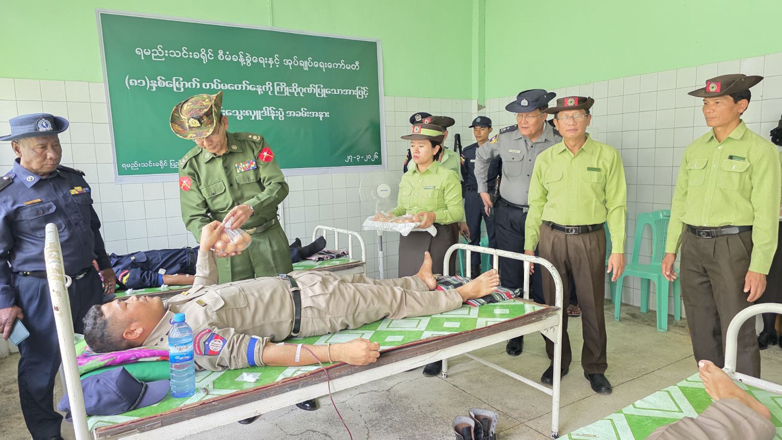 အဆိုပါ စုပေါင်းသွေးလှူဒါန်းပွဲသို့ ခရိုင်စီမံခန့်ခွဲရေးနှင့်အုပ်ချုပ်ရေးကော်မတီဥက္ကဋ္ဌ ဦးစိန်မြင့်၊ အမှတ် ၃ စစ်အခြေခံလေ့ကျင့်ရေးတပ်၊ ခေတ္တတပ်မှုး ဒုဗိုလ်မှုးကြီး ရဲမြတ်သူ၊ ခရိုင်စီမံခန့်ခွဲရေးနှင့်အုပ်ချုပ်ရေးကော်မတီအဖွဲ့ဝင် ဒုဗိုလ်မှုးကြီး ဇော်မျိုးထက်၊ ခရိုင်ရဲတပ်ဖွဲ့မှုး ဒုရဲမှုးကြီး မင်းဟန်၊ မြို့နယ်စီမံခန့်ခွဲရေးနှင့်အုပ်ချုပ်ရေးကော်မတီဥက္ကဋ္ဌ ဦးမောင်ရွှေသိန်းနှင့် ခရိုင်၊ မြို့နယ့်အဆင့်ဌာနဆိုင်ရာများမှ သွေးလှူဒါန်းသည့် ခရိုင်/ မြို့နယ်ထွေအုပ်ဝန်ထမ်း (၇) ဦး ၊ ခရိုင်/ မြို့နယ်ရဲတပ်ဖွဲ့ဝင် (၆) ဦး၊ အကျဥ်းဦးစီးဌာနဝန်ထမ်း (၅) ဦး၊ ခရိုင်/ မြို့နယ်မီးသတ်တပ်ဖွဲ့ဝင် (၄) ဦး စုစုပေါင်းဝန်ထမ်း ၂၂ ဦးတို့အား သွားရောက်ကြည့်ရှုအားပေးကာ ခရိုင်စီမံခန့်ခွဲရေးနှင့်အုပ်ချုပ်ရေးကော်မတီဥက္ကဋ္ဌက တစ်ဦးလျှင် ထောက်ပံ့ငွေ ကျပ် ၁၀၀၀၀နှင့် ကြက်ဥ ၁၀ လုံးစီ ထောက်ပံ့ပေးအပ်ခဲ့ကြောင်း သိရသည်။