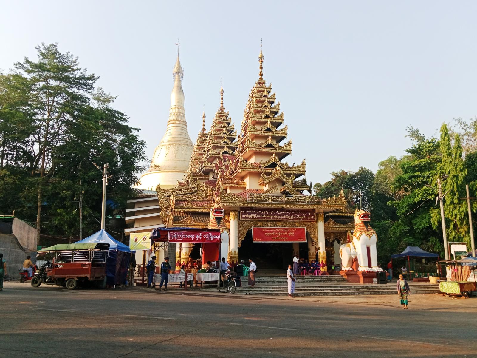 အခမ်းအနားတွင် တိုင်းဒေသကြီး လွှတ်တော်ကိုယ်စားလှယ် ဦးနေဝင်း၊ ခရိုင်စီမံခန့်ခွဲရေးနှင့်အုပ်ချုပ်ရေးကော်မတီဥက္ကဋ္ဌ ဦးညွန့်နွယ်၊ ခရိုင်ခေတ္တရဲတပ်ဖွဲ့မှူး ရဲမှူးအောင်နိုင်ဝင်း၊ မြို့နယ်စီမခန့်ခွဲရေးနှင့်အုပ်ချုပ်ရေးကော်မတီဥက္ကဋ္ဌ ဦးခင်မောင်မြင့်၊ ရွှေဆံတော်ဘဏ္ဍာတော်ထိန်းဂေါပကဥက္ကဋ္ဌဦးအေးကိုတို့က ဖဲကြိုးဖြတ်ဖွင့်လှစ်ပေးသည်။ ဆက်လက်၍ အလှူရှင်များက ရွှေမိုး၊ ငွေမိုးများရွာသွန်းပေးခဲ့ကြောင်းသိရသည်။