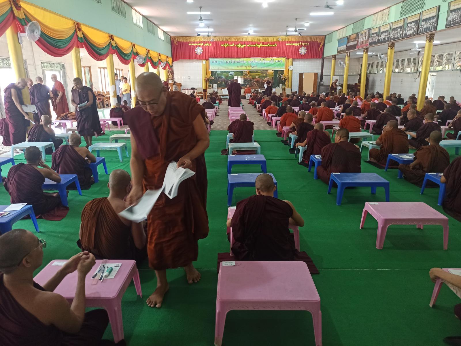 ရန်ကုန်တိုင်းဒေသကြီး၊ သင်္ဃန်းကျွန်းမြို့နယ်တွင် ၂၀၂၆ ခုနှစ်နိုင်ငံတော်အစိုးရဓမ္မာစရိယနှင့် ပါဠိပထမပြန်စာမေးပွဲများကို ဆုတောင်းပြည့်ကျိုက္ကစံစေတီဓမ္မဗိမာန်တော်ကြီး၊ မင်္ဂလာဗဟိုမဏ္ဍပ်၊ ပြားတစ်ရာဓမ္မာရုံနှင့် လယ်တီဝိပဿနာကျောင်းတိုက်တို့၌ ယနေ့မွန်းတည့် ၁၂ နာရီက ဘာသာရပ်အလိုက် ဆက်လက်ဖြေဆိုလျက်ရှိရာ သင်္ဃန်းကျွန်းမြို့နယ်စီမံခန့်ခွဲရေးနှင့်အုပ်ချုပ်ရေးကော်မတီဥက္ကဋ္ဌ ဦးလှမျိုး အစိုးရဓမ္မာစရိယစာမေးပွဲဖြေဆိုလျက်ရှိသည့် သံဃာတော်၊ သီလရှင်များအား ဖူးမြော်ကြည်ညိုသည်။