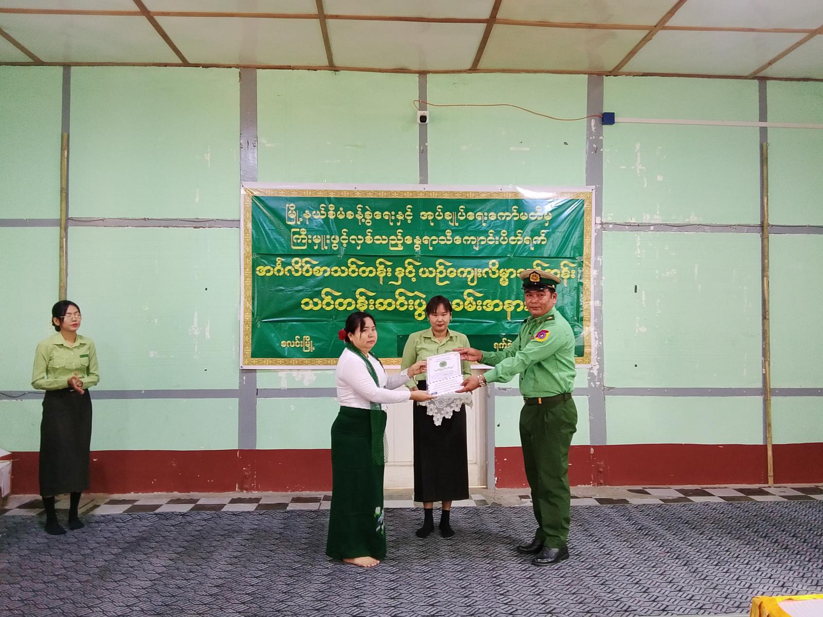 ယဥ်ကျေးလိမ္မာနှင့် အခြေခံအင်္ဂလိပ်စာသင်တန်းဆင်းပွဲတွင် မြို့နယ်စီမံခန့်ခွဲရေးနှင့် အုပ်ချုပ်ရေးကော်မတီ ဥက္ကဋ္ဌနှင့် အဖွဲ့ဝင်များက သင်တန်းဆရာမများ ဆုရကျောင်းသား၊ ကျောင်းသူများ၊ အမျိုးသမီးရေးရာ အဖွဲ့များ မိခင်နှင့်ကလေးစောင့်ရှောက်ရေးအဖွဲ့များနှင့် အမှတ်တရ၊ ဓာတ်ပုံရိုက်ကူးခဲ့ပြီး၊ အဆိုပါသင်တန်းများတွင် သင်တန်းသား၊ သင်တန်းသူ ၁၀၀ ဦး တက်ရောက်ခဲ့ကြောင်း သိရသည်။