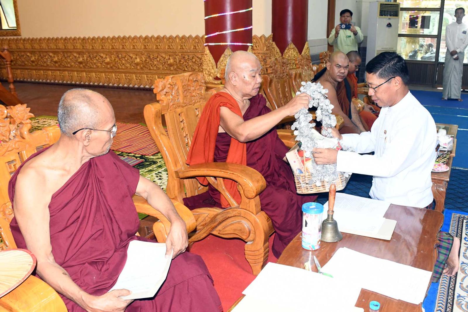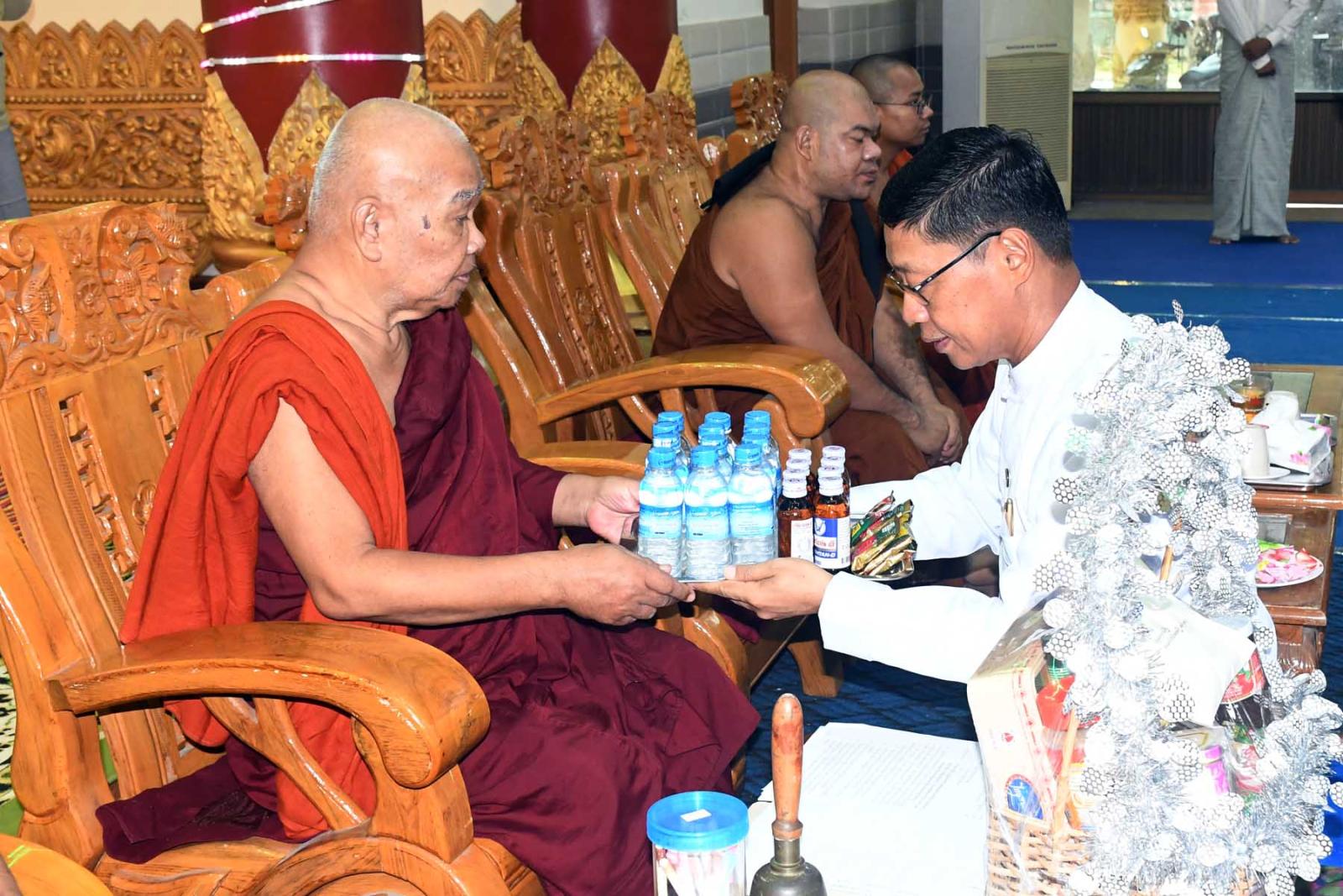 ထို့နောက်တိုင်းဒေသကြီးလူမှုရေးရာဝန်ကြီးနှင့်တာဝန်ရှိသူများက သာသနာ့ဗိမာန်တော်ကြီး၌ ဖြေဆိုနေသော သံဃာတော်၊ သီလရှင်၊ သာမဏေနှင့် လူပုဂ္ဂိုလ်များအား ကြည်ညိုအားပေးပြီးအအေးနှင့် ရေသန့်များ ဆက်ကပ်လှူဒါန်းသည်။