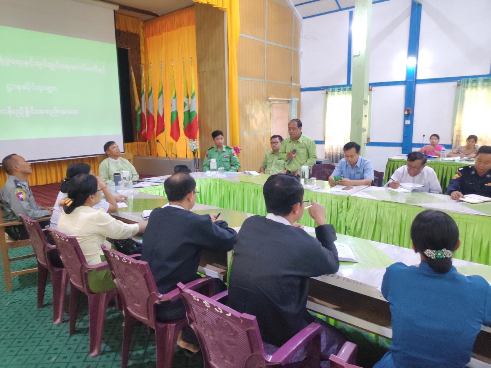 ထို့နောက် မြို့နယ်စီမံခန့်ခွဲရေးနှင့်အုပ်ချုပ်ရေးကော်မတီဥက္ကဋ္ဌ ဦးအောင်စိုးမိုးက မြန်မာ့ရိုးရာအတာသင်္ကြန်ပွဲတော်နှင့် လမ်းလျှောက်သင်္ကြန်များ စည်ကားသိုက်မြိုက်စွာကျင်းပနိုင်ရေး၊ စတုဒိသာကျွေးမွေးနိုင်ရေးစီစဉ်ထားရှိမှု အခြေအနေများနှင့်စပ်လျဉ်း၍ ဆွေးနွေးပြောကြားရာ တက်ရောက်လာသည့် ခရိုင်/မြို့နယ် စီမံခန့်ခွဲရေးနှင့်အုပ်ချုပ်ရေးကော်မတီအဖွဲ့ဝင်များ၊ ဌာနဆိုင်ရာတာဝန်ရှိသူများက ကဏ္ဍအလိုက်ပြန်လည်ဆွေးနွေးတင်ပြခဲ့ကြကြောင်း သိရသည်။