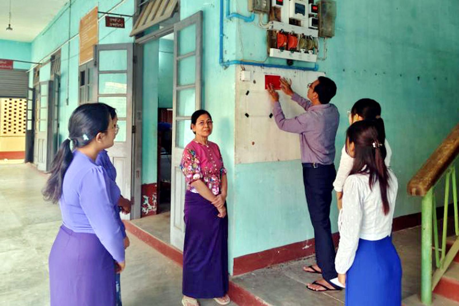 ထိုသို့ဆောင်ရွက်ရာတွင် မြို့နယ်အထွေထွေအုပ်ချုပ်ရေးဦးစီးဌာန ဒုတိယမြို့နယ်အုပ်ချုပ်ရေးမှူး ဦးကျော်ညွန့်၊ မြို့နယ်လျှပ်စစ်အင်ဂျင်နီယာ ဦးဇော်ဇော်အောင်နှင့် ဝန်ထမ်းများ၊ မြို့နယ်မီးသတ်ဦးစီးမှူးနှင့် သက်ဆိုင်ရာဌာနတာဝန်ရှိသူများက လျှပ်စစ်ဝါယာရှော့မှတစ်ဆင့် မီးလောင်မှုမဖြစ်ပွာစေရေး လျှပ်စစ်ဝါယာကြိုးများကို စနစ်တကျသွယ်တန်းထားရှိရန်၊ ဟောင်းနွမ်းဆွေးမြေ့သည့် လျှပ်စစ်ဝါယာကြိုးများကို အသုံးမပြုရန်၊ ပလပ်ပေါက်များတွင် မီးသုံးစွဲပြီးပါက ပလပ်ပင်ခေါင်းများကို ဖြုတ်ထားရန်၊ လျှပ်စစ်မီးဖြင့် အိမ်သုံးပစ္စည်းများ သုံးစွဲရာတွင် တစ်ပြိုင်နက်သုံးစွဲခြင်းမပြုရန်၊ မလိုအပ်ပါက လျှပ်စစ်မီးများကို ပိတ်ထားရန်၊ အပြင်ထွက်ပါက လျှပ်စစ်မိန်းခလုတ်များပိတ်ထားရန် စသည့် ဆောင်ရန်ရှောင်ရန်အချက်များကို မီးသုံးစွဲသူပြည်သူများအား အသိပညာပေးဆွေးနွေးသည်။