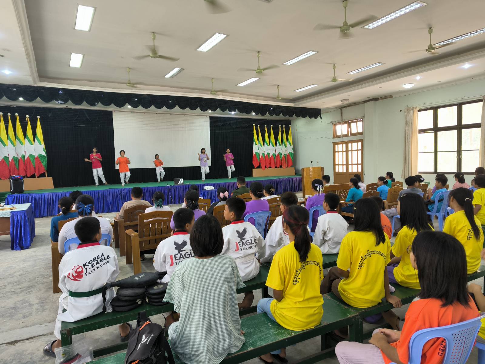 ပထမဦးစွာ တိုက်ကွမ်ဒိုသင်တန်း၊ Fitness Dance သင်တန်းမှ ကျောင်းသား ကျောင်းသူလေးများက သရုပ်ပြဖျော်ဖြေခဲ့ကြပြီး၊ ဇမ္ဗူသီရိမြို့နယ်စီမံခန့်ခွဲရေးနှင့်အုပ်ချုပ်ရေးကော်မတီဥက္ကဋ္ဌ ဦးဇေနော်ဝင်းက သင်တန်းဆင်းအမှာစကားပြောကြားခဲ့ပြီး ဇမ္ဗူသီရိမြို့နယ် ပြန်ကြားရေးနှင့်ပြည်သူ့ဆက်ဆံရေးဦးစီးဌာနရုံးမှ မြို့နယ်ဦးစီးမှူး ဒေါ်နီလာစိုးက သင်တန်းဖြစ်မြောက်ရေးအတွက် အာဟာရဒါနနှင့် သွားလာရေးလွယ်ကူစေရန် ကူညီပံ့ပိုး လှူဒါန်းပေးပါသော အလှူရှင်များအား ကျေးဇူးတင်စကားပြောကြားခဲ့ကြောင်း သိရသည်။