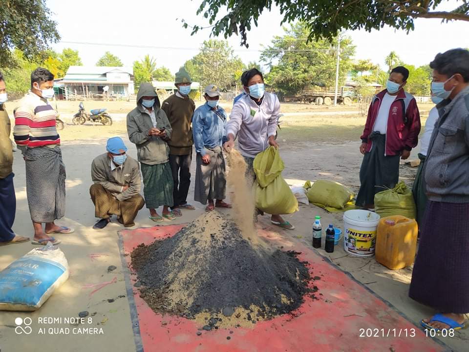 ကချင်ပြည်နယ်၊ ဗန်းမော်ခရိုင်၊ မြို့လှမြို့ရှိ တောင်သူများအနေဖြင့် သွင်းအားစုများ လျှော့ချပြီး ကုန်ကျစရိတ် သက်သာသည့် သဘာဝမြေဆွေးပြုလုပ်နည်းများအသုံးပြုခြင်းဖြင့် မြေဆီလွှာ များကောင်းမွန်လာစေပြီး သီးနှံများသဘာဝအလျောက် ကြီးထွားနှုန်းကောင်းမွန်စေရန် ရည်ရွယ်၍ မြို့လှမြို့၊စိုက်ပျိုးရေးဦးစီးဌာန ဦးစီးမှူးနှင့်ဝန်ထမ်းများက သဘာဝမြေဆွေးပြုလုပ်နည်းနှင့် သဘာဝပိုးပြေးဆေး၊ ပိုးသတ်ဆေး ပြုလုပ် နည်းများ လက်တွေ့သရုပ်ပြခြင်းကို ယနေ့နံနက်ပိုင်းက တောင်သူ ဦးခင်မောင်သန်း၏ စိုက်ပျိုးရေးခြံ အတွင်း ဆောင်ရွက်ခဲ့ကြကြောင်း သိရှိရသည်။