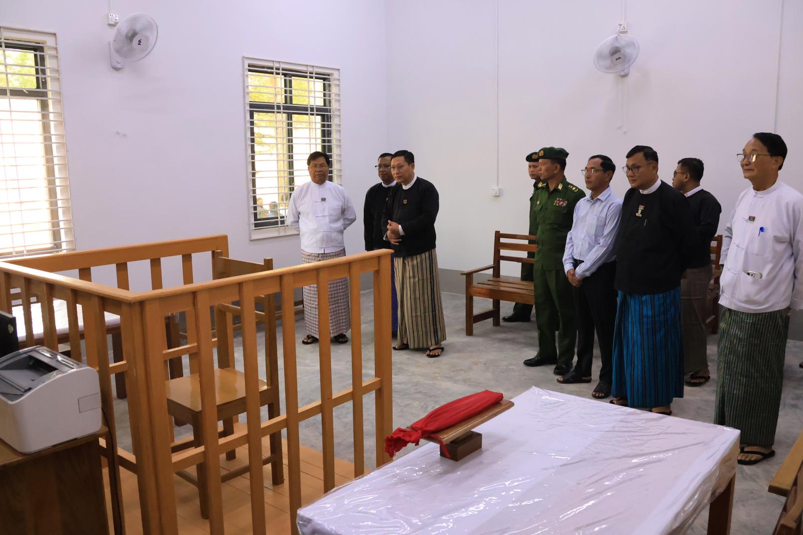 ဦးစွာ ပြည်နယ်ဝန်ကြီးချုပ်၊ ဒေသကွပ်ကဲရေးမှူး၊ ပြည်နယ်တရားသူကြီးချုပ်၊ သယံဇာတ ရေးရာဝန်ကြီးနှင့် ပြည်နယ်တရားရေးဦးစီးမှူးတို့က လွိုင်ကော်ခရိုင်၊ မြို့နယ်တရားရုံးသစ်အား ဖဲကြိုးဖြတ်၍ ဖွင့်လှစ်ပေးသည်။