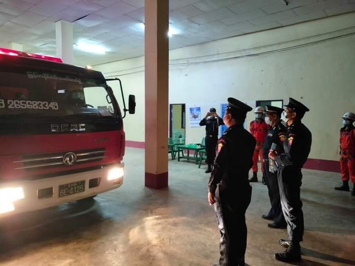 ရှမ်းပြည်နယ်(အရှေ့ပိုင်း)၊ တာချီလိတ်ခရိုင် တာလေမြို့ရှိ တာလေနယ်မြေမီးသတ်စခန်းအား ရှမ်းပြည်နယ် ပြည်နယ်မီးသတ်ဦးစီးမှူး၊ ညွှန်ကြားရေးမှူး ဦးအောင်ဝင်းစိန်သည် ယမန်နေ့ ညနေပိုင်းက ရောက်ရှိပြီး မီးသတ်စခန်းရှိ မီးသတ်ရေယာဉ်၊ မီးသတ်စက်ပစ္စည်း ကိရိယာ များနှင့် စခန်းတွင်း လုပ်ငန်းဆောင်ရွက်နေမှု အခြေအနေများ ကြည့်ရှုစစ်ဆေးခဲ့ကြောင်းသိရသည်။