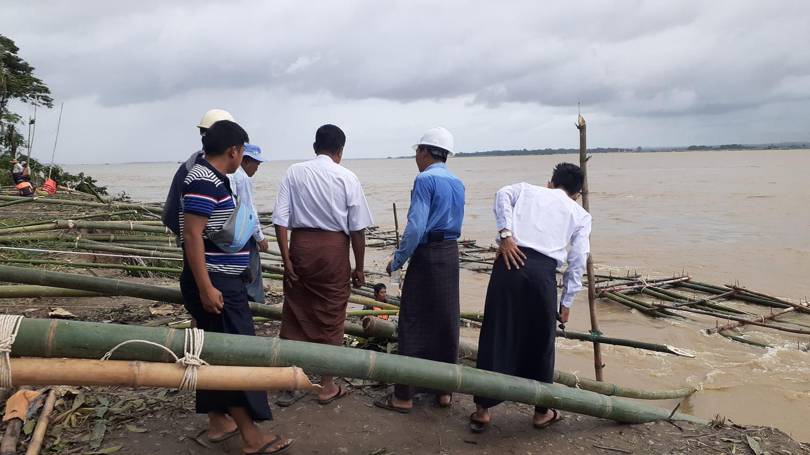 မြန်အောင်မြို့ လွန်ဆေးမြိုင်ပန်းခြံအနီးတွင် ဧရာဝတီမြစ်ရေတိုက်စားမှုကြောင့် ကမ်းပြို ကမ်းစားမှုကာကွယ်ရေးလုပ်ငန်းများကို မီးသတ်တပ်ဖွဲ့ဝင်များ၊ တပ်မတော်သားများ၊ ဆည်မြောင်းနှင့် ရေအသုံးချမှုစီမံခန့်ခွဲရေးဦးစီးဌာန ဝန်ထမ်းများ၊ ရေအရင်းအမြစ်နှင့် မြစ်ချောင်းများ ဖွံ့ဖြိုးတိုးတက်ရေးဦးစီးဌာန ဝန်ထမ်းများ၊ ဒေသခံပြည်သူများနှင့် အရန်မီးသတ်တပ်ဖွဲ့ဝင်များ၊ မြို့နယ်ရဲတပ်ဖွဲ့ဝင်များ၊ ဌာနဆိုင်ရာဝန်ထမ်းများစုပေါင်း၍ ရေပေါ်ရေ လွဲတန်းချခြင်း၊ အရေးပေါ် ကာကွယ်ရေးလုပ်ငန်း (Floating Unit ) ဆောင်ရွက်ခြင်း၊ ကမ်းပြိုမှု ဖြစ်ပေါ်နေသောနေရာတွင် ရေကာတန်းရိုက်ခြင်းစသည့် ကမ်းပြိုကမ်းစားမှုကာကွယ် ရေးလုပ်ငန်းများ ဆောင်ရွက်သည်။
