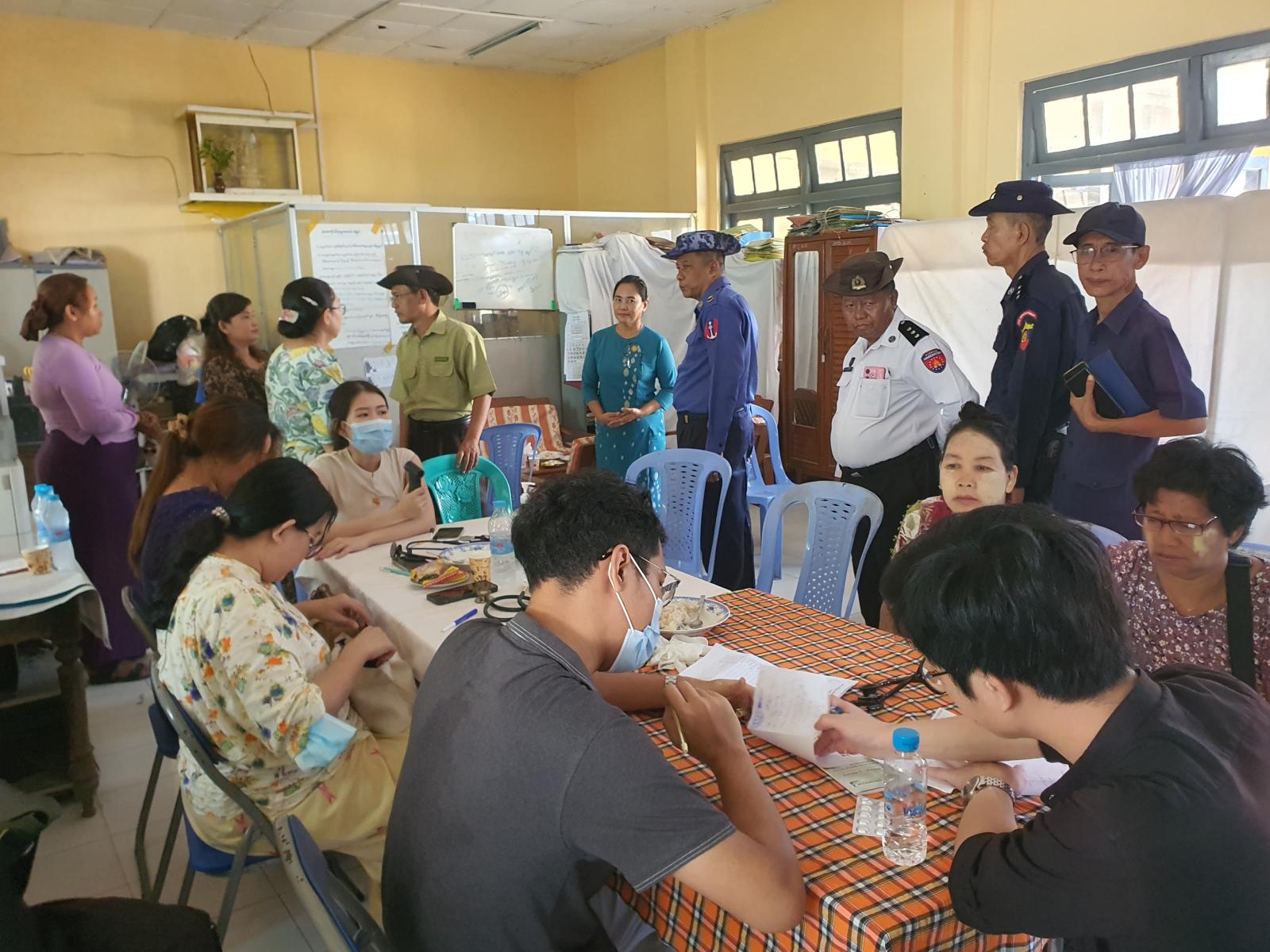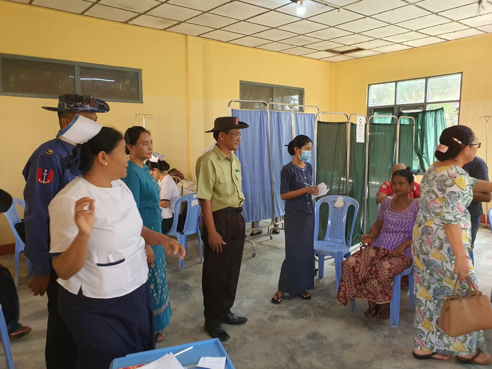 အဆိုပါဆေးကုသရေးအဖွဲ့အား မြို့နယ်စီမံခန့်ခွဲရေးနှင့်အုပ်ချုပ်ရေးကော်မတီ ဥက္ကဋ္ဌနှင့် အဖွဲ့ဝင်များ၊ ဌာနဆိုင်ရာတာဝန်ရှိသူများ၊ မြို့နယ်ကျန်းမာရေး ဝန်ထမ်းများ၊ ရပ်ကွက်အုပ်ချုပ်ရေးအဖွဲ့ဝင်များ၊ မီးသတ်တပ်ဖွဲ့ဝင်များ၊ ကြက်ခြေနီသူနာပြုတပ်ဖွဲ့ဝင်များနှင့် လူမှုရေးပရဟိတအဖွဲ့ဝင်များက လိုအပ်သည်များ ဝိုင်းဝန်းကူညီ ဆောင်ရွက်ပေးခဲ့ကြောင်း သိရသည်။