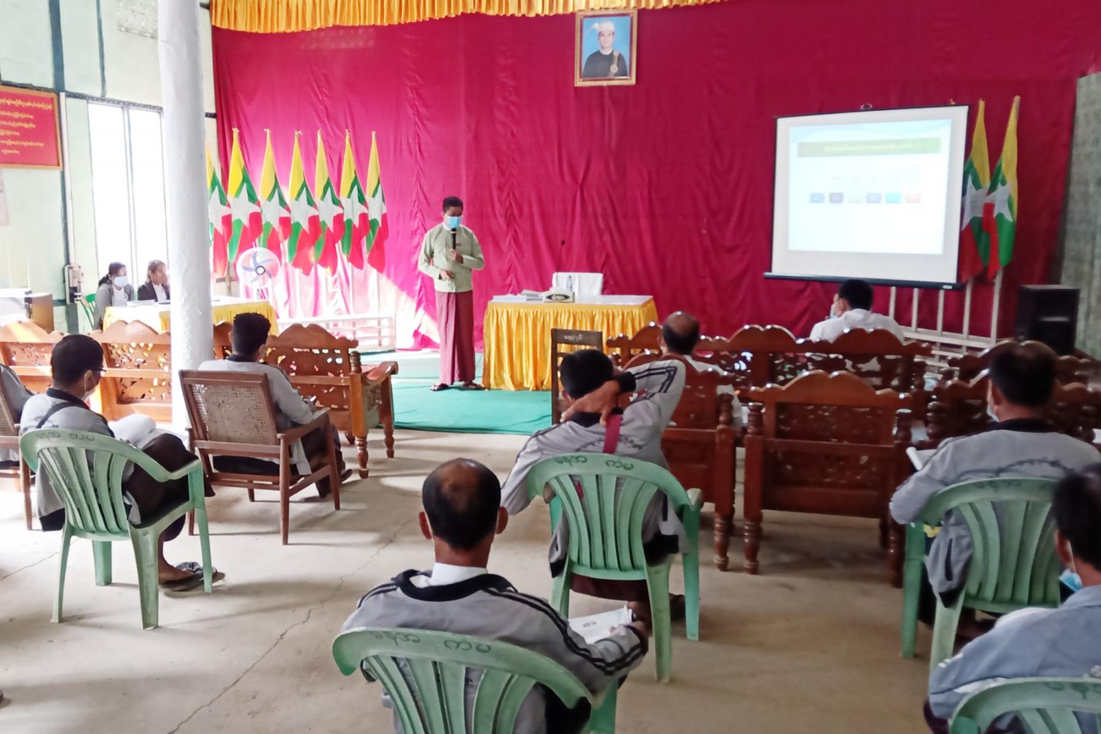 ထိုသို့ ရှင်းလင်းရာတွင် မြို့နယ်အုပ်ချုပ်ရေးမှူး ဦးစိုးလင်းသိန်းက ရပ်ကွက်/ကျေးရွာ အုပ်ချုပ် ရေးမှူး များပြန်လည်ရွေးချယ်မည့် လုပ်ငန်းစဉ်အဆင့်ဆင့်နှင့် လိုက်နာရမည့် လုပ်ထုံး လုပ်နည်းများ လုပ်ငန်း တာဝန်များ အုပ်ချုပ်ရေးဆိုင်ရာ ပြုပြင်ပြောင်းလဲရေးလုပ်ငန်းများ၊ ပိုမိုဖွံ့ဖြိုးတိုးတက်အောင် အကောင်အထည်ဖော် ဆောင်ရွက်သွားနိုင်ရေးအတွက် ပြည်ထောင်စု အစိုးရအဖွဲ့ရုံး ဝန်ကြီး ဌာန ၏ ရပ်ကွက် ကျေးရွာအုပ်စု အုပ်ချုပ်ရေးဆိုင်ရာ ဒုတိယအကြိမ်ပြင်ဆင်သည့် နည်းဥပဒေများ အကြောင်း ကို Power Point ဖြင့် ချပြရှင်းလင်းခဲ့သည်။
